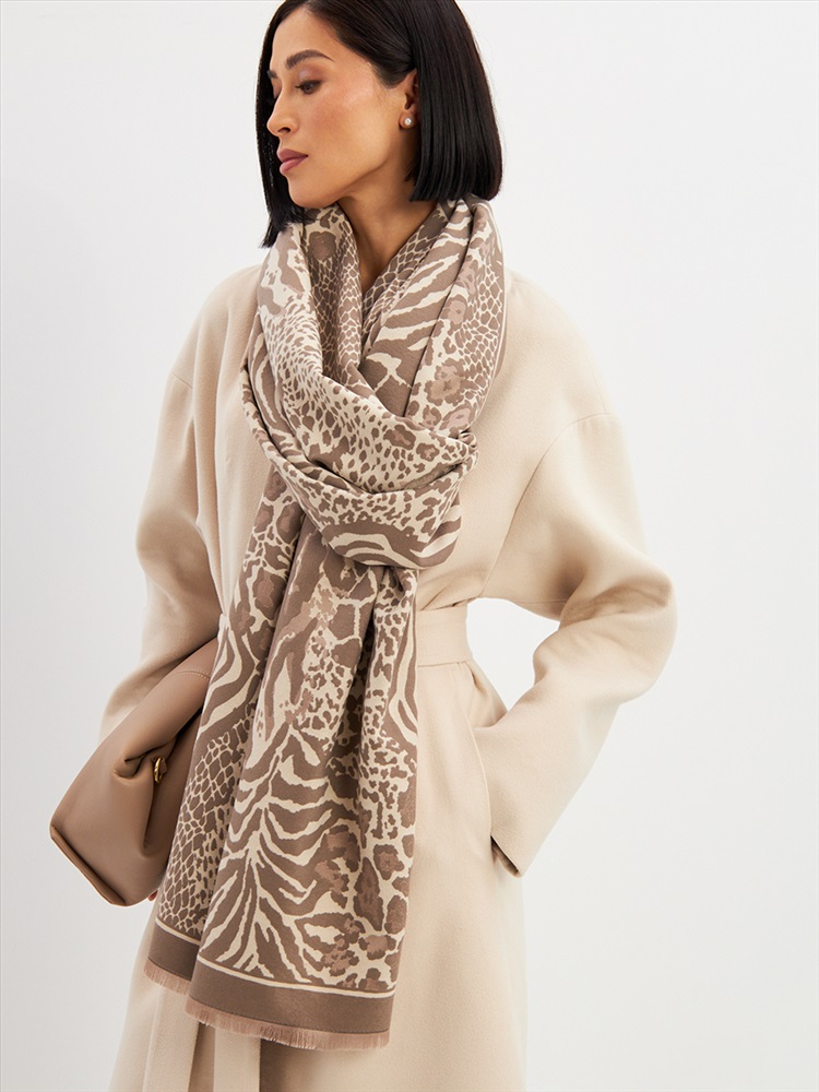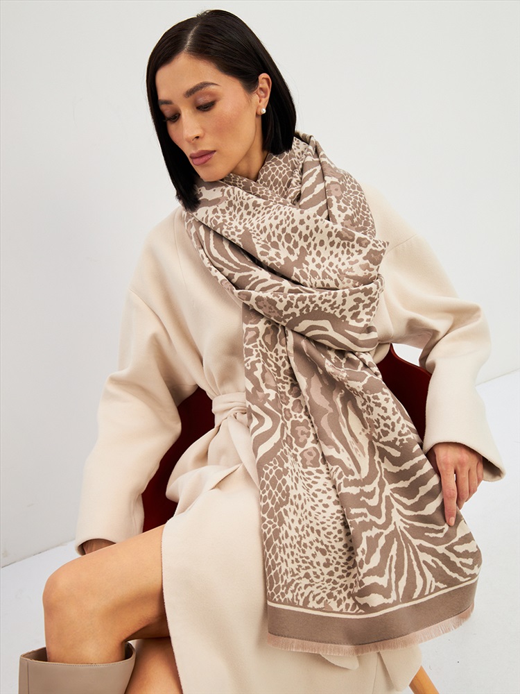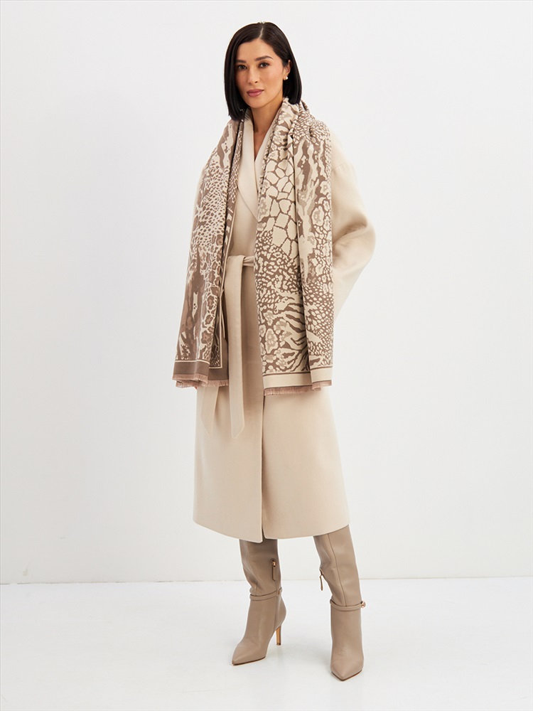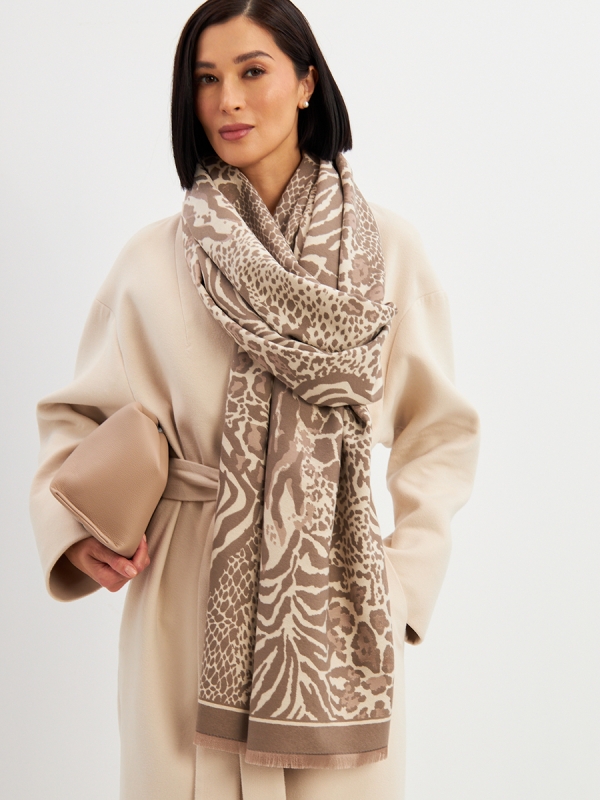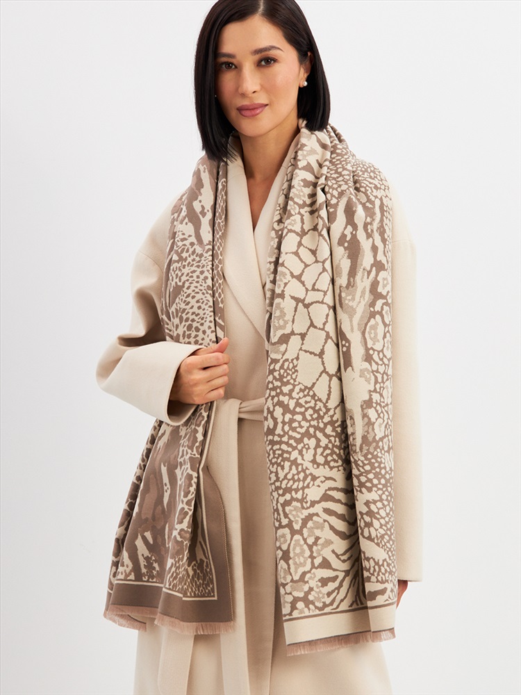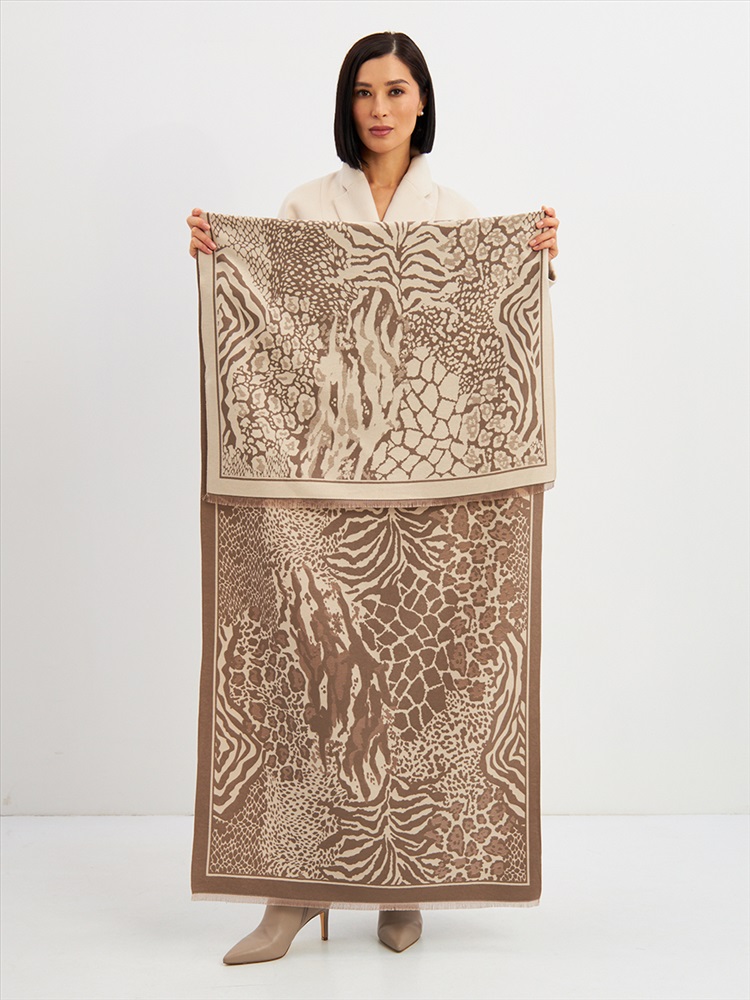 Цвет: Бежевый, Кофейный Состав: 45% модал, 35% вискоза, 20% шерсть Состав: Вискоза, Шерсть, Модал Размер: 70х180 см Принт: Абстракция Большой, мягкий, тонкий и очень нежный палантин с рисунком. Края изделия украшены бахромой ручной работы. Машинная деликатная стирка. Комментарии к товару