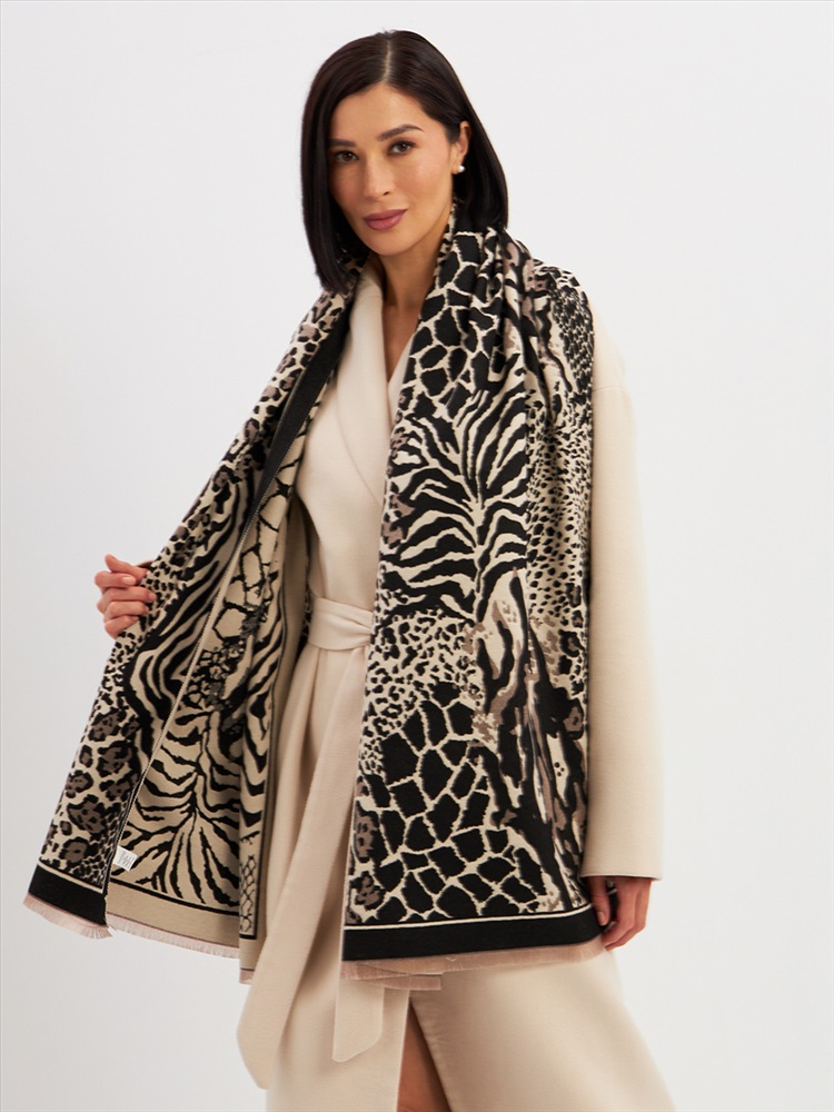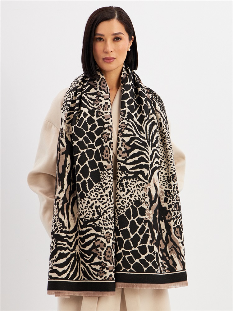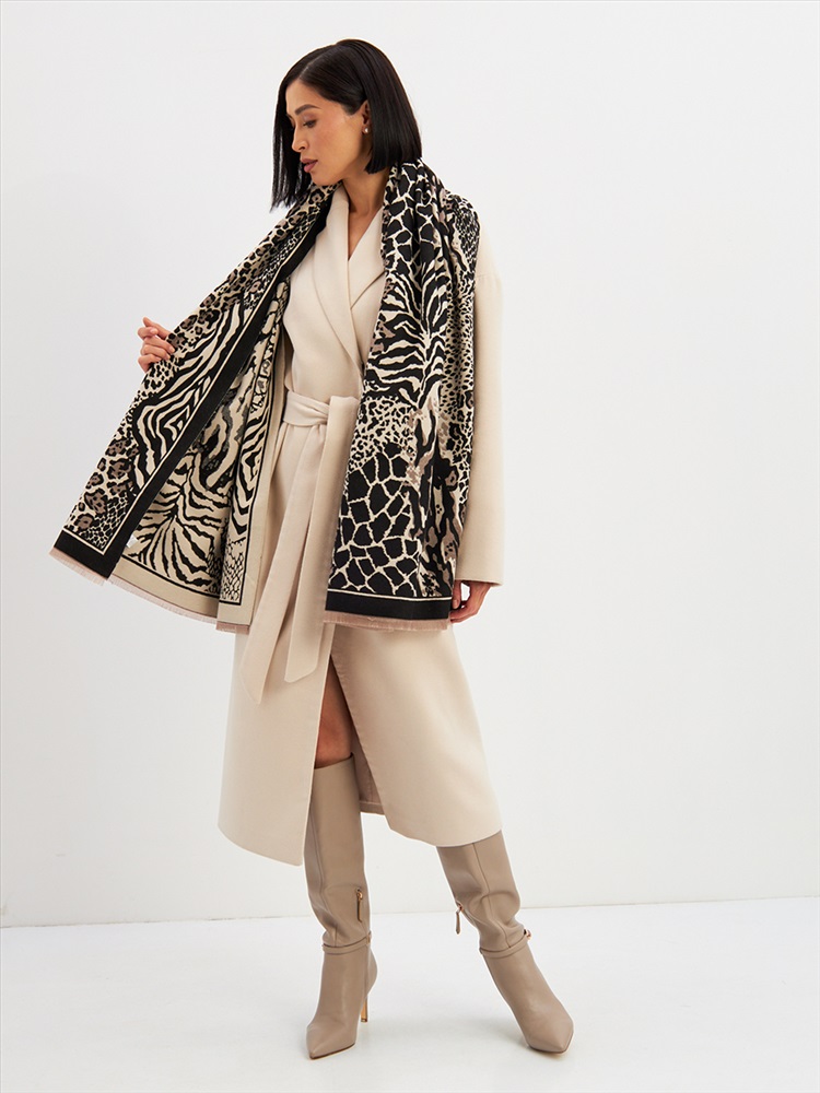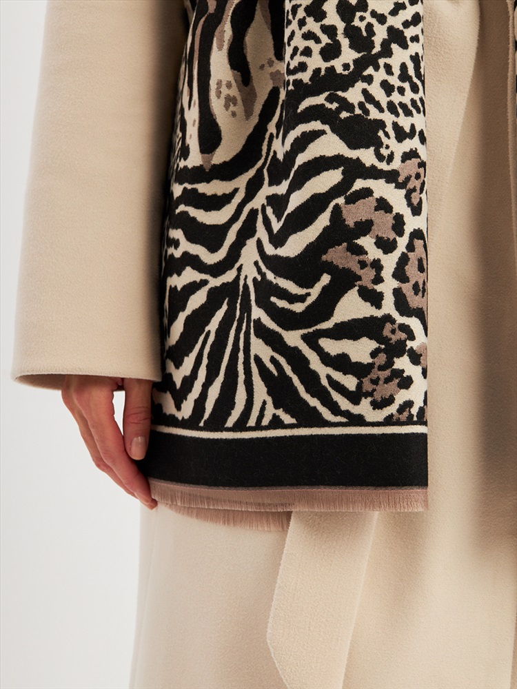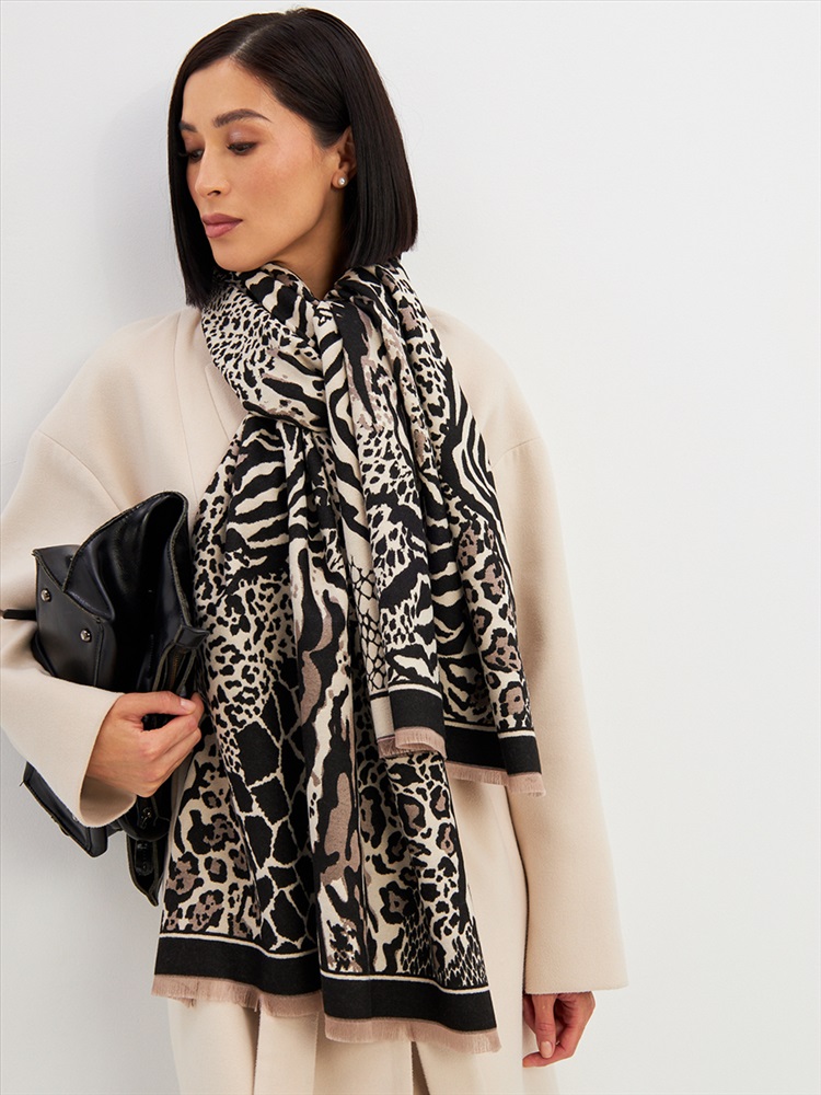 Цвет: Кофейный, Черный Состав: 45% модал, 35% вискоза, 20% шерсть Состав: Вискоза, Шерсть, Модал Размер: 70х180 см Принт: Абстракция Большой, мягкий, тонкий и очень нежный палантин с рисунком. Края изделия украшены бахромой ручной работы. Машинная деликатная стирка. Комментарии к товару