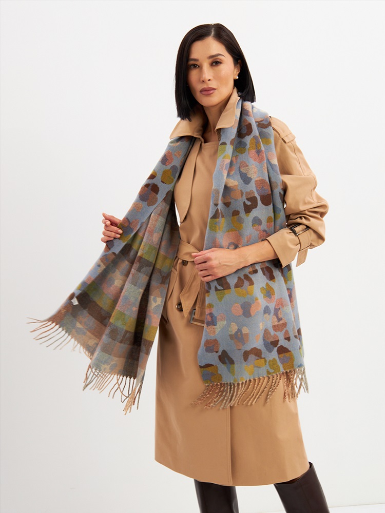 Цвет: Серый Состав: 55% вискоза, 25% кашемир, 20% шерсть Состав: Вискоза, Шерсть, Кашемир Размер: 70 x 180 см Принт: Абстракция Большой, мягкий, тонкий и очень нежный палантин с рисунком. Края изделия украшены бахромой ручной работы. Машинная деликатная стирка. Комментарии к товару