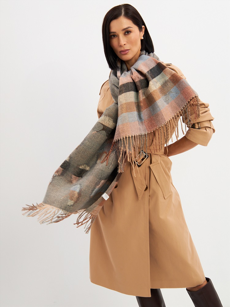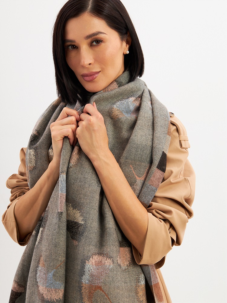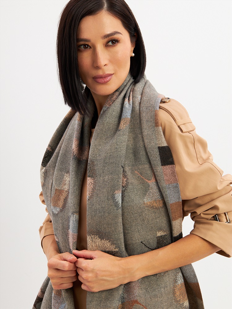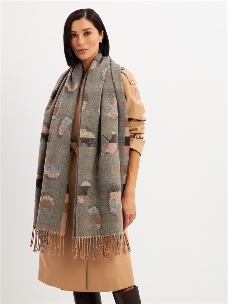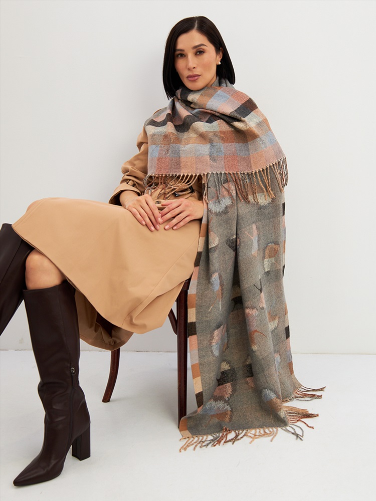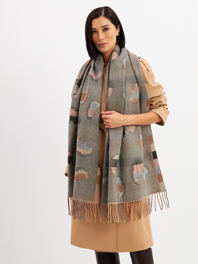 Цвет: Бежевый, Серый Состав: 55% вискоза, 25% кашемир, 20% шерсть Состав: Вискоза, Шерсть, Кашемир Размер: 70 x 180 см Принт: Абстракция Большой, мягкий, тонкий и очень нежный палантин с рисунком. Края изделия украшены бахромой ручной работы. Машинная деликатная стирка. Комментарии к товару