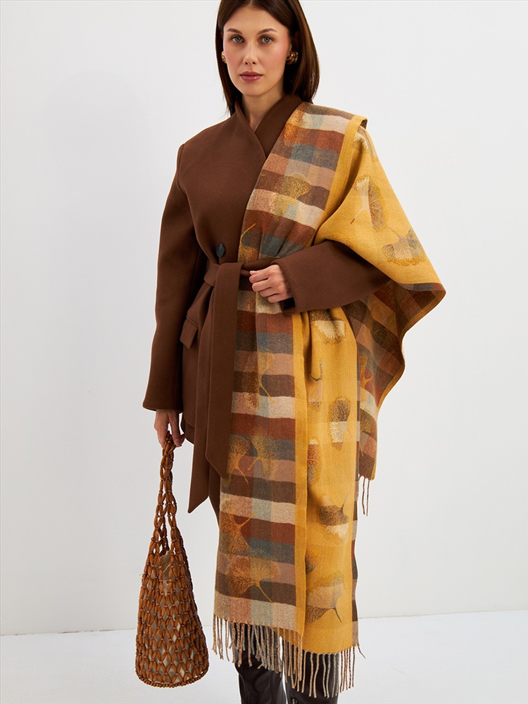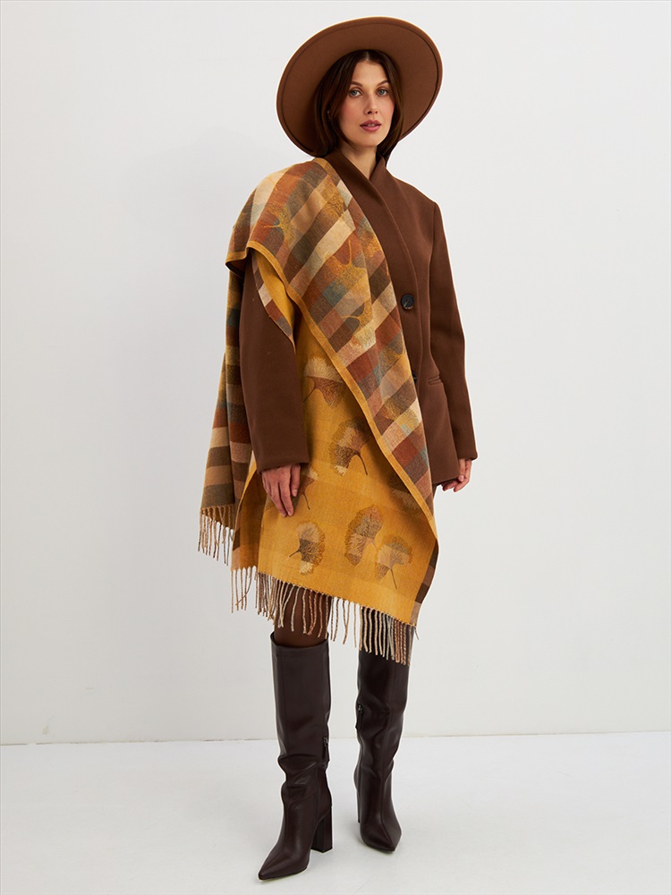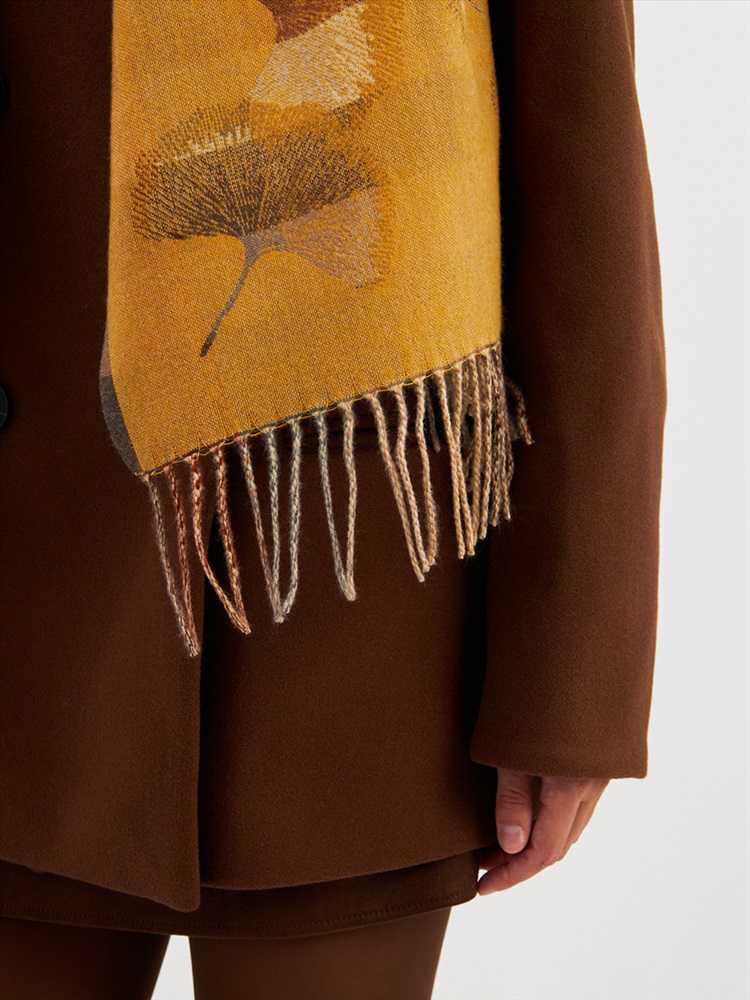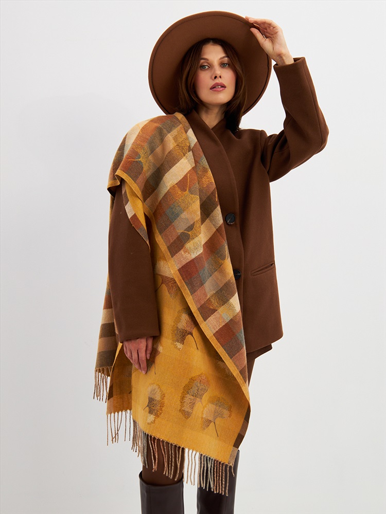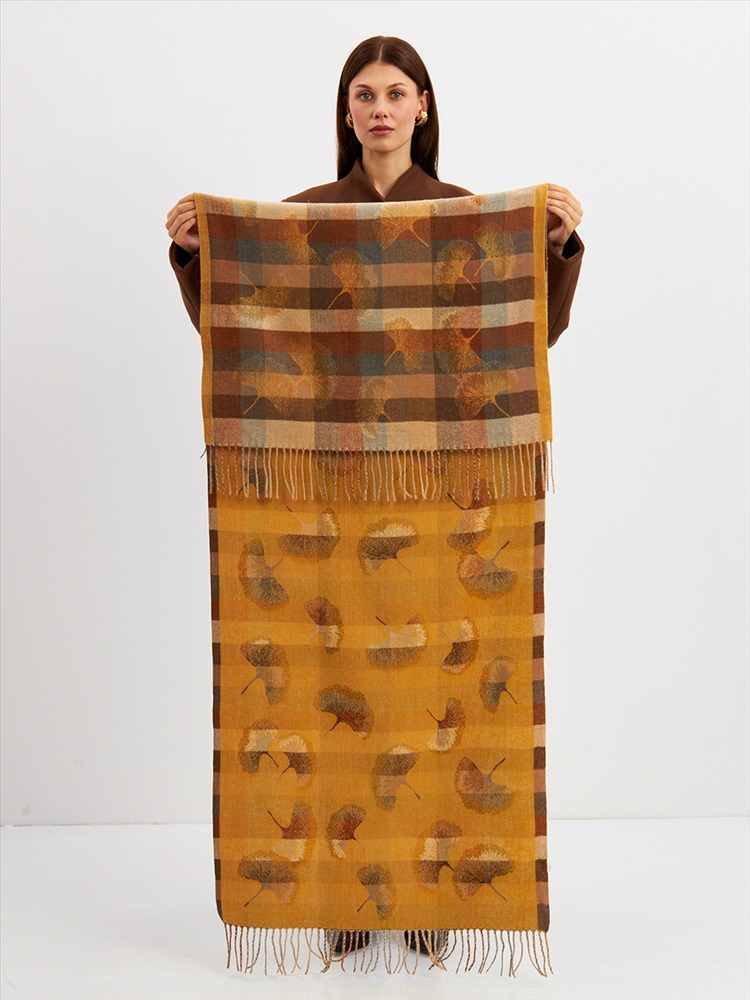 Большой, мягкий, тонкий и очень нежный палантин с рисунком. Края изделия украшены бахромой ручной работы. Машинная деликатная стирка.