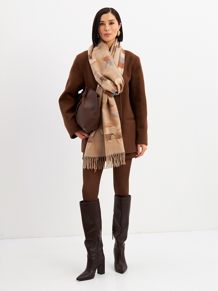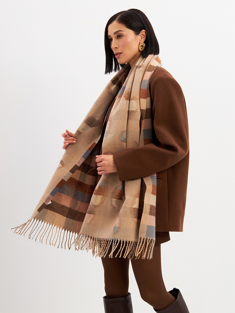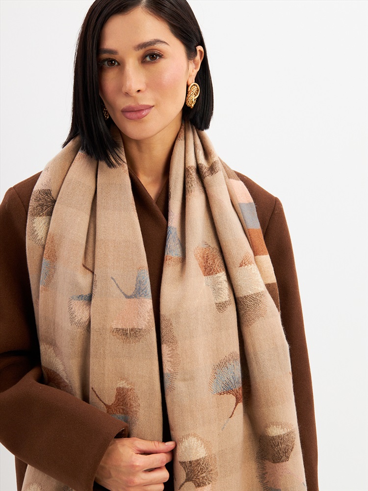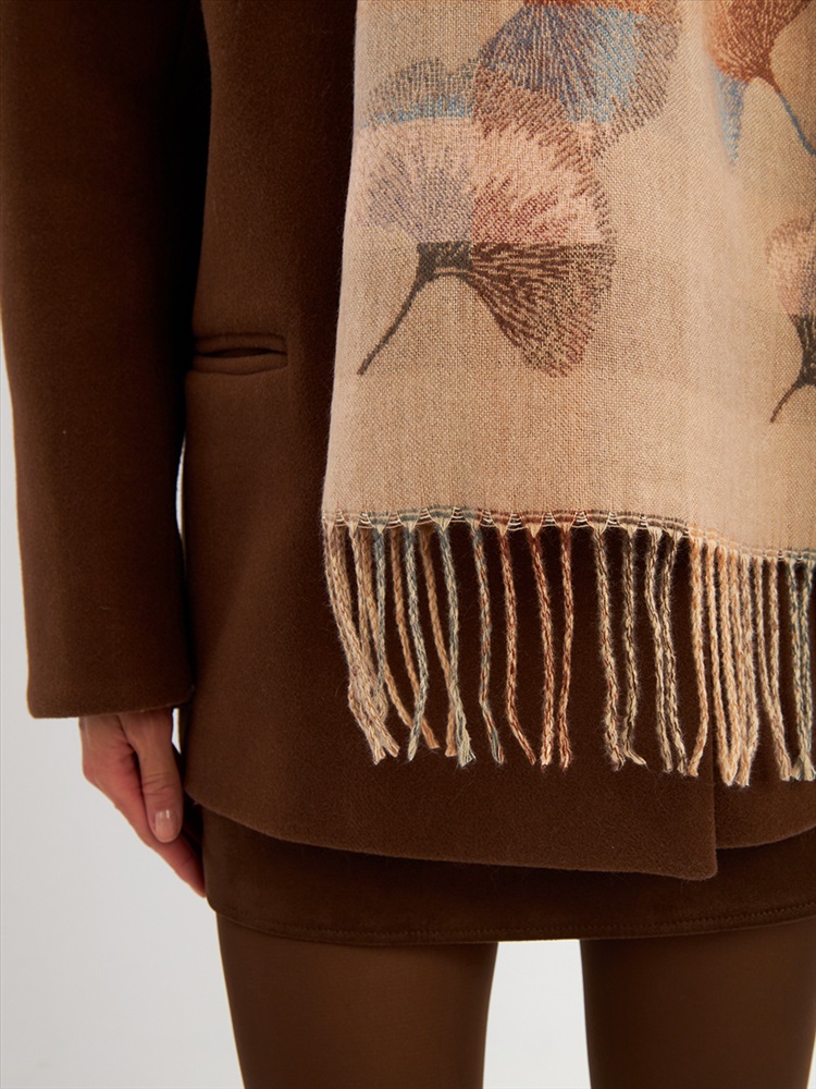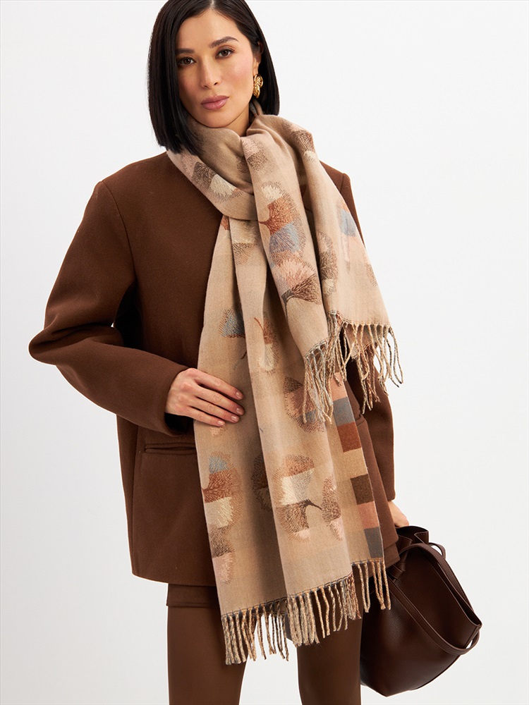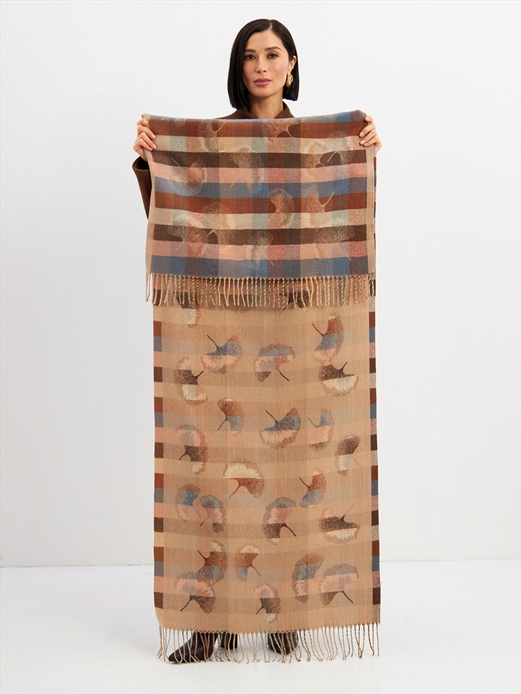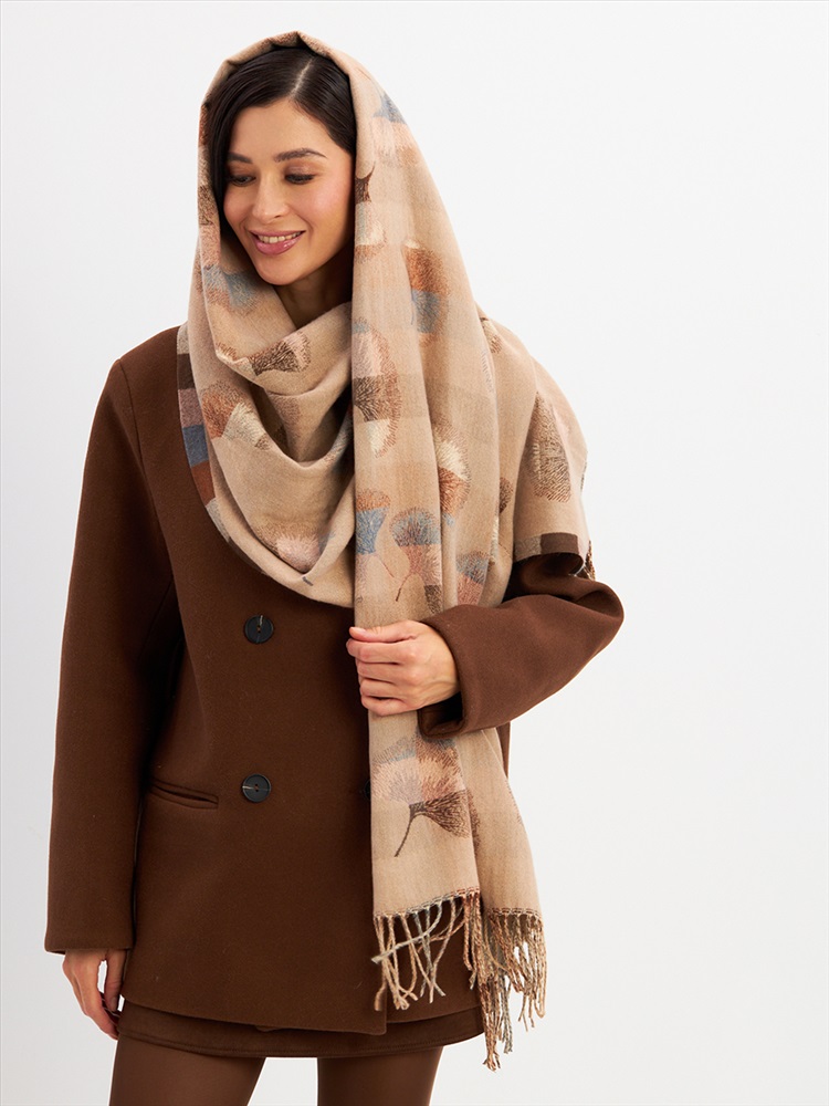 Большой, мягкий, тонкий и очень нежный палантин с рисунком. Края изделия украшены бахромой ручной работы. Машинная деликатная стирка.