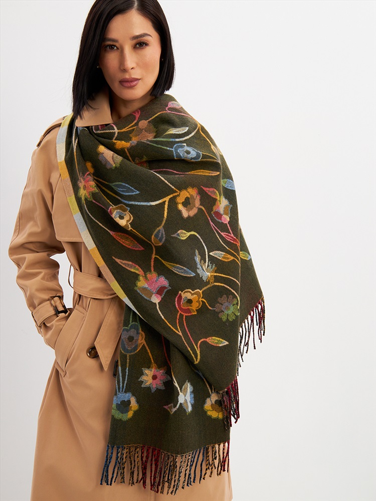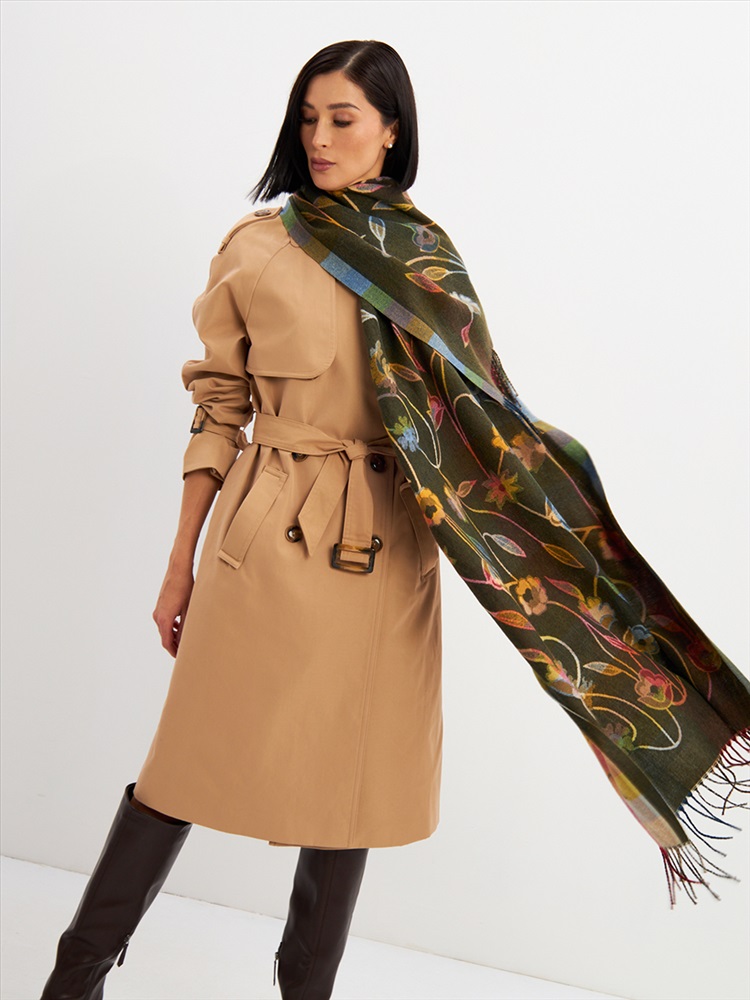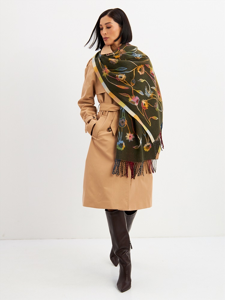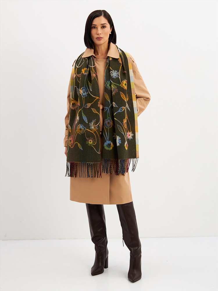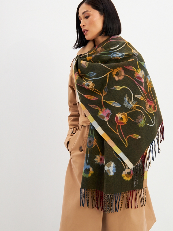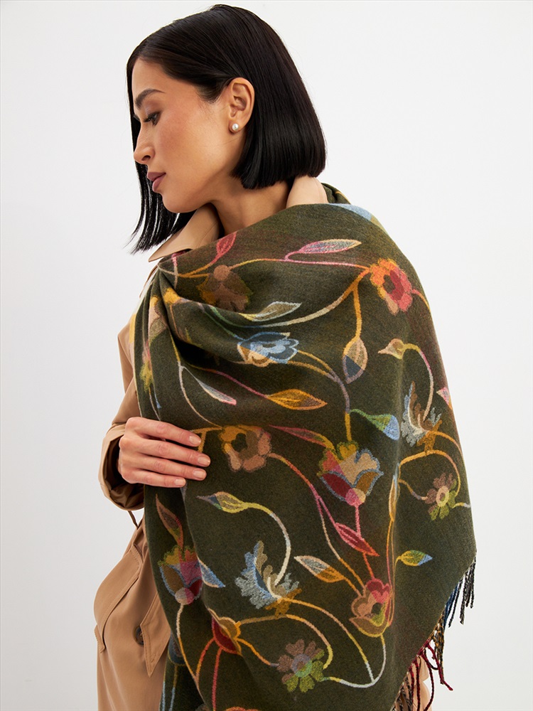 Цвет: Коричневый Состав: 55% вискоза, 25% кашемир, 20% шерсть Состав: Вискоза, Шерсть, Кашемир Размер: 70 x 180 см Принт: Цветочный Большой, мягкий, тонкий и очень нежный палантин с рисунком. Края изделия украшены бахромой ручной работы. Машинная деликатная стирка. Комментарии к товару