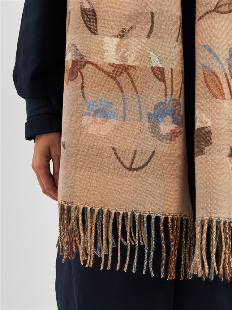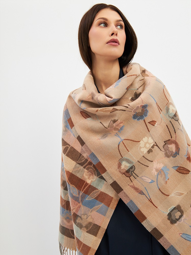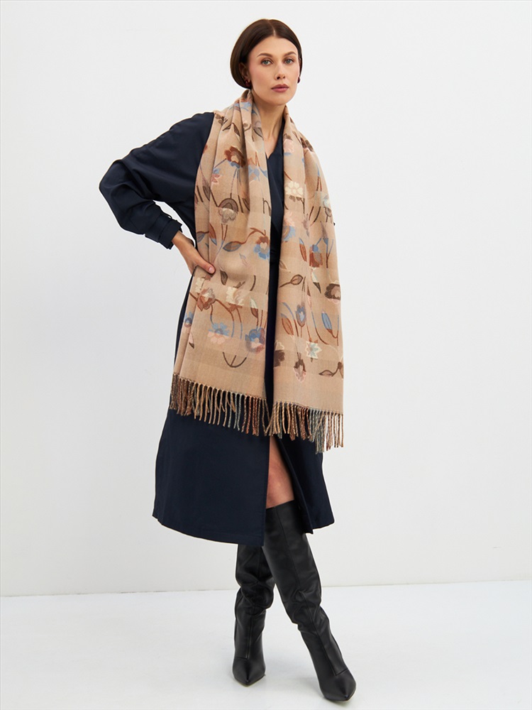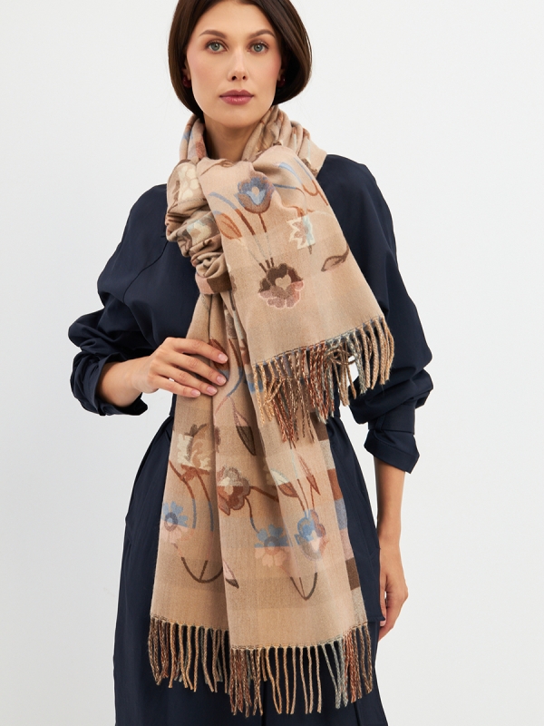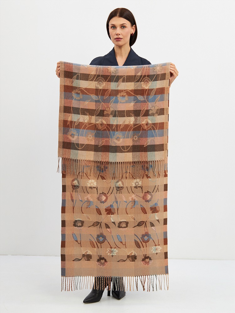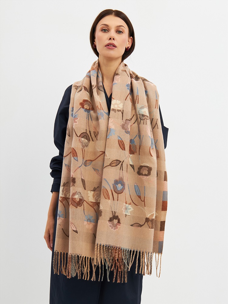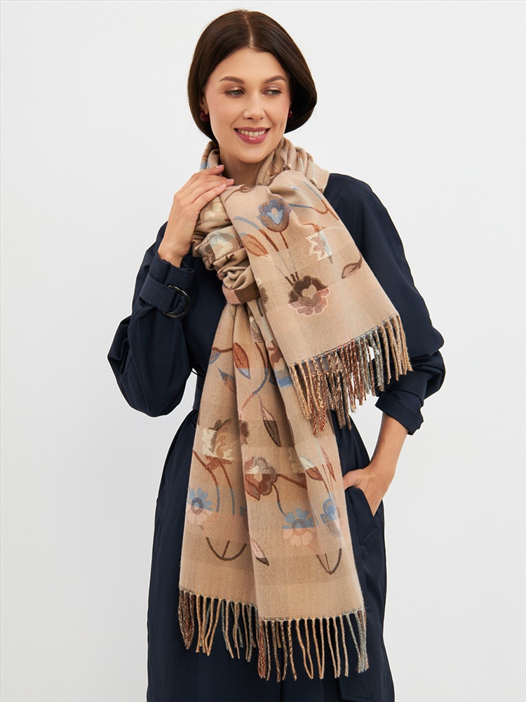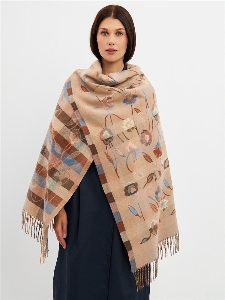Большой, мягкий, плотный и очень нежный палантин с рисунком. Края изделия украшены бахромой ручной работы. Машинная деликатная стирка.