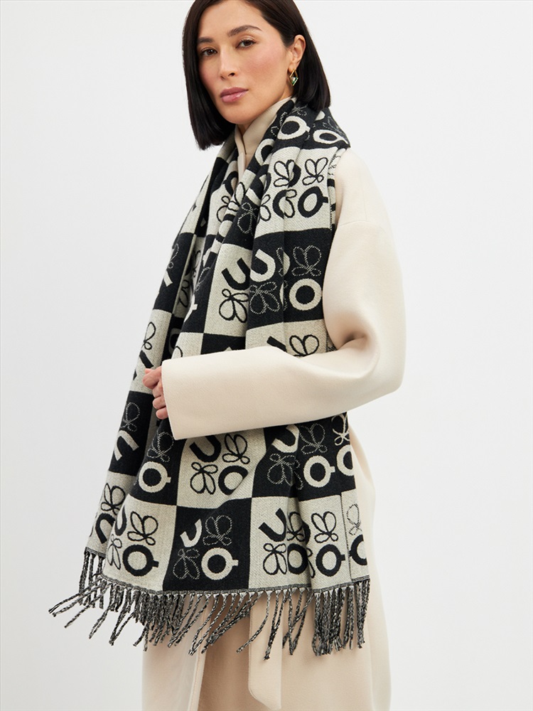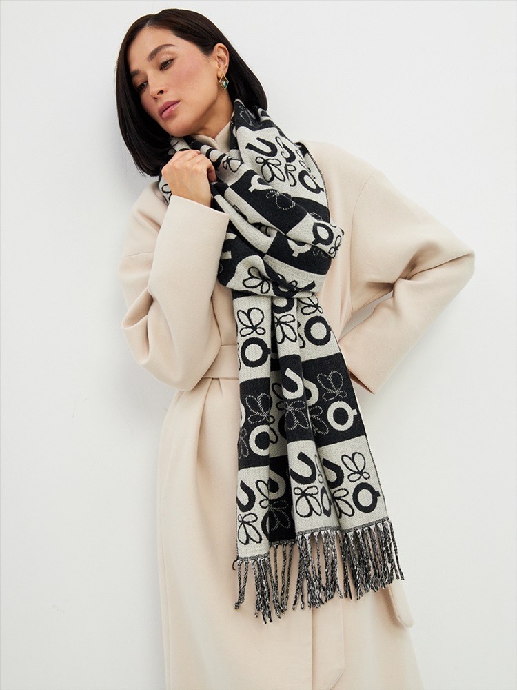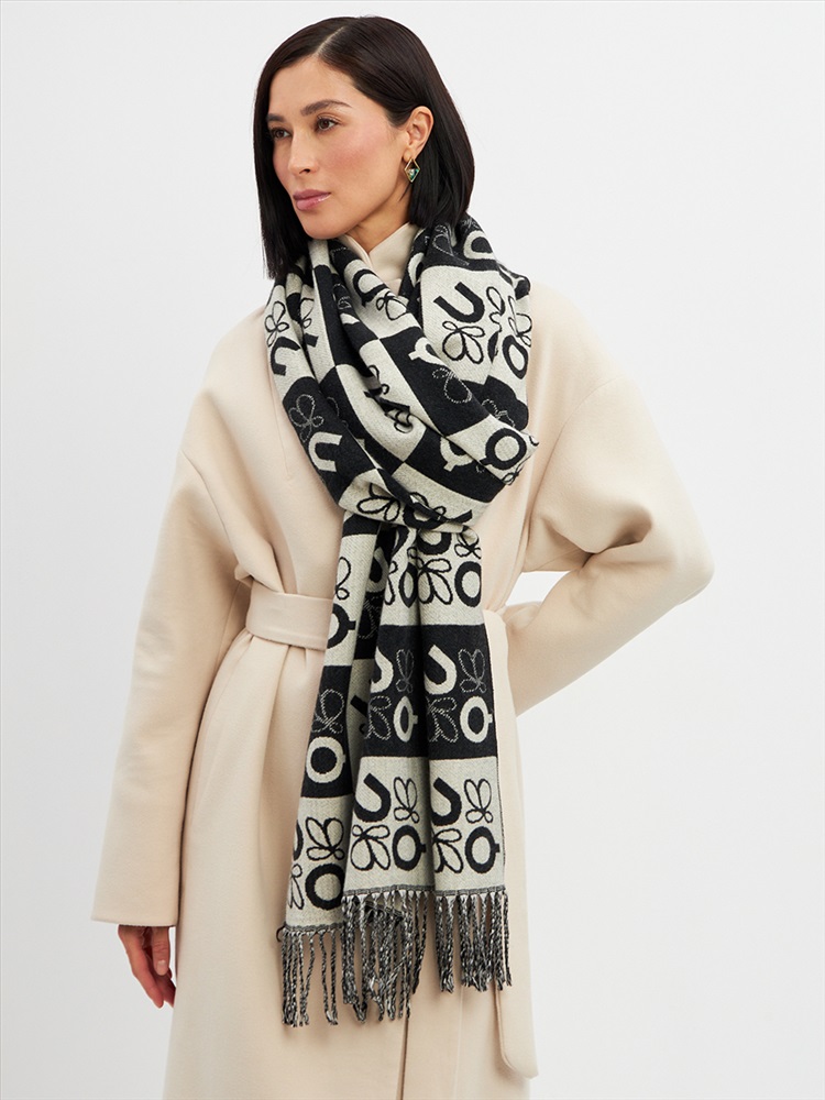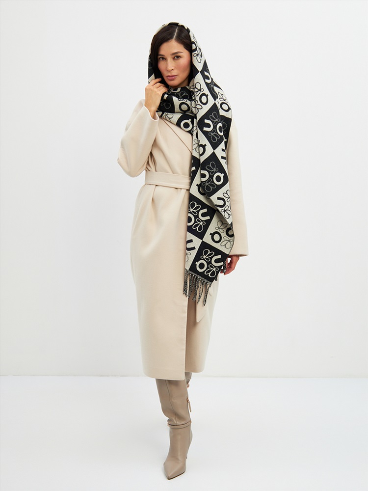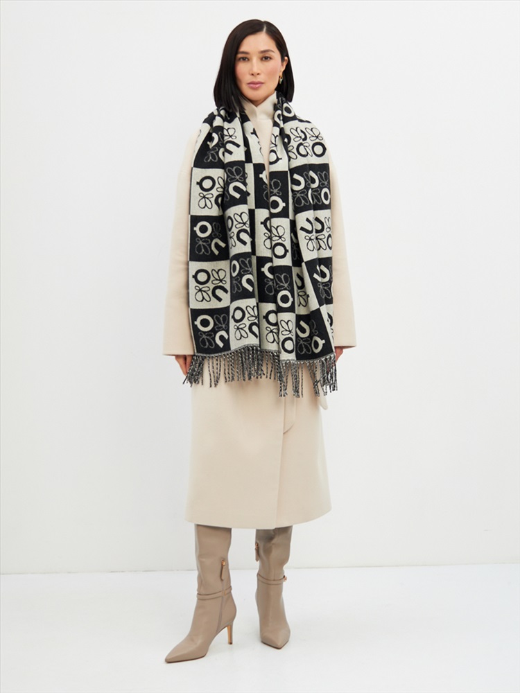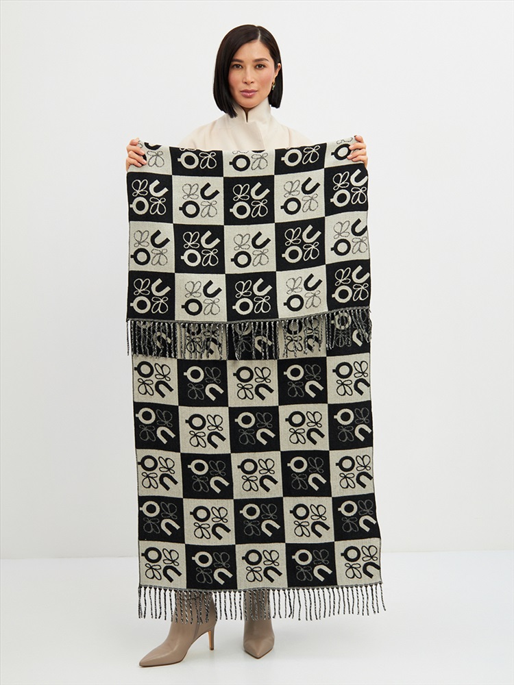 Большой, мягкий, тонкий и очень нежный палантин с рисунком. Края изделия украшены бахромой ручной работы. Машинная деликатная стирка.