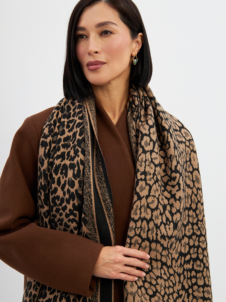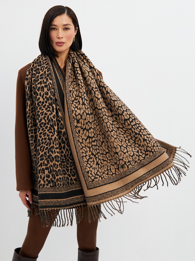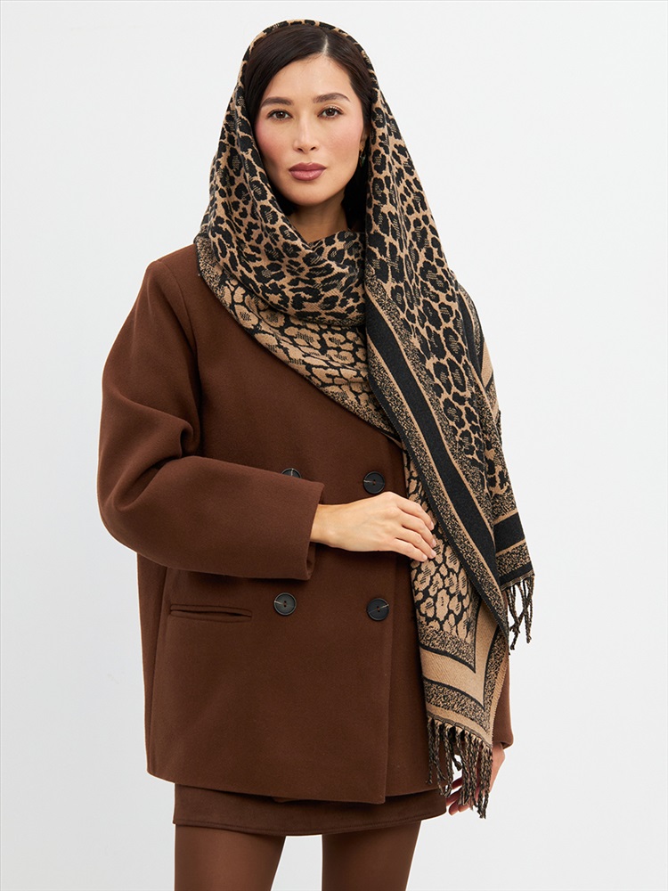 Цвет: Кофейный, Коричневый, Черный, Шоколад Состав: 45% модал, 35% вискоза, 20% шерсть Состав: Вискоза, Шерсть, Модал Размер: 70х180 см Принт: Животный (леопард), Орнаментальный Большой, мягкий, тонкий и очень нежный палантин с рисунком. Края изделия украшены бахромой ручной работы. Машинная деликатная стирка. Комментарии к товару