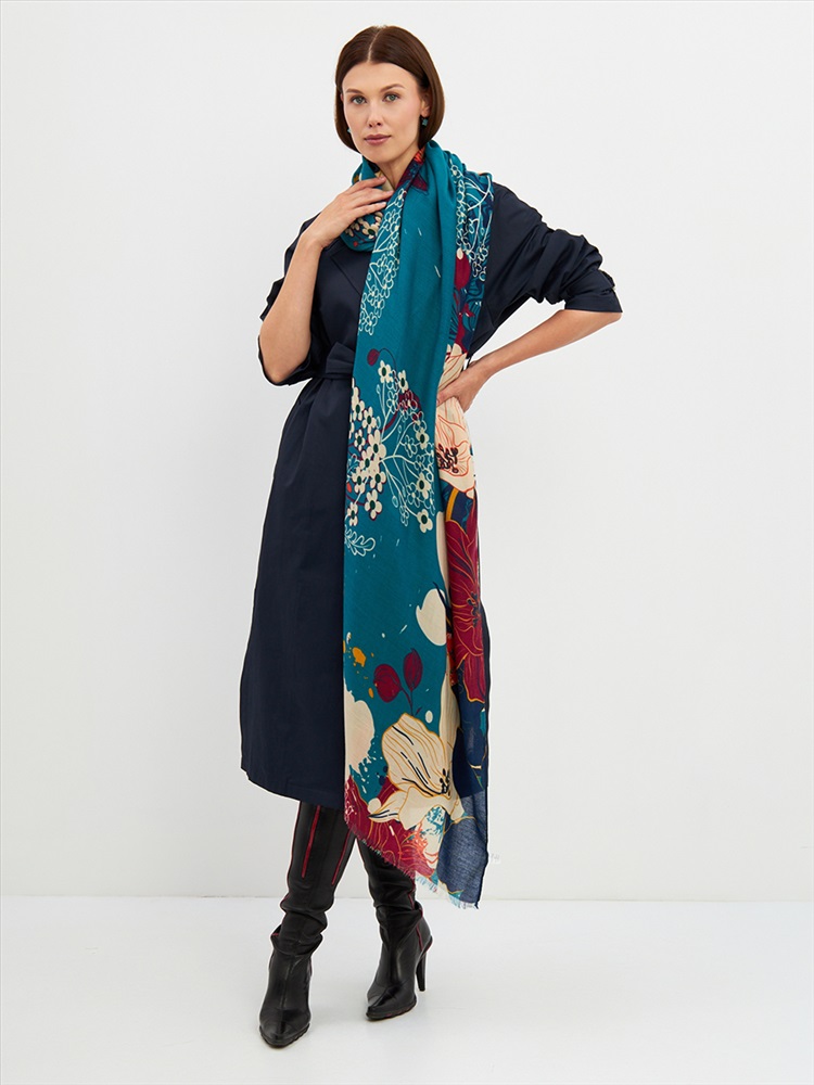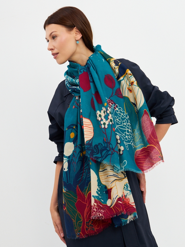 Цвет: Бирюзовый, Бордовый, Голубой, Желтый, Зеленый, Морская волна Размер: 80 x 180 см Состав: 55% полиэстер, 35% вискоза, 10% шелк Состав: Вискоза, Полиэстер, Шелк Принт: Цветочный, Орнаментальный, Сюжетный Большой, мягкий, тонкий и очень нежный палантин с рисунком. Края изделия украшены бахромой ручной работы. Машинная деликатная стирка. Комментарии к товару