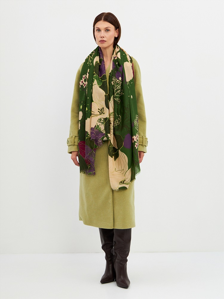 Цвет: Бежевый, Зеленый Размер: 80 x 180 см Состав: 55% полиэстер, 35% вискоза, 10% шелк Состав: Вискоза, Полиэстер, Шелк Принт: Абстракция, Цветочный Большой, мягкий, тонкий и очень нежный палантин с рисунком. Края изделия украшены бахромой ручной работы. Машинная деликатная стирка. Комментарии к товару