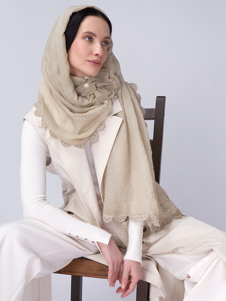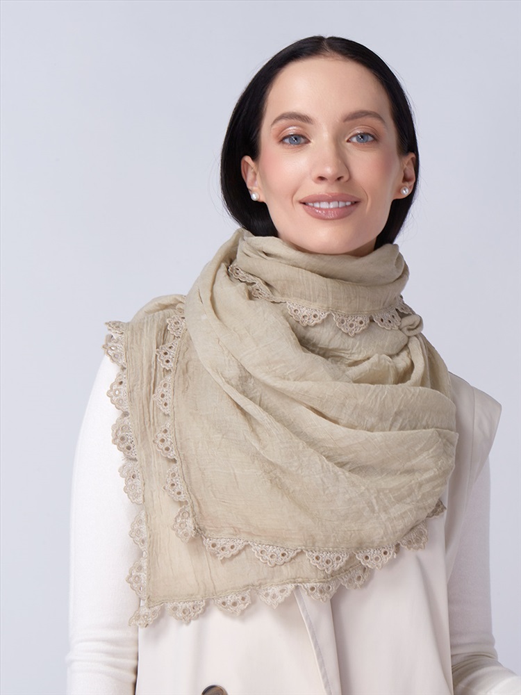 Цвет: Бежевый Состав: 55% полиэстер, 25% вискоза, 20% хлопок Состав: Вискоза, Полиэстер, Хлопок Размер: 70 x 180 см Принт: Однотонный Сезон: Осень, Весна Большой, мягкий, тонкий и очень нежный палантин с рисунком. Только ручная стирка. Комментарии к товару