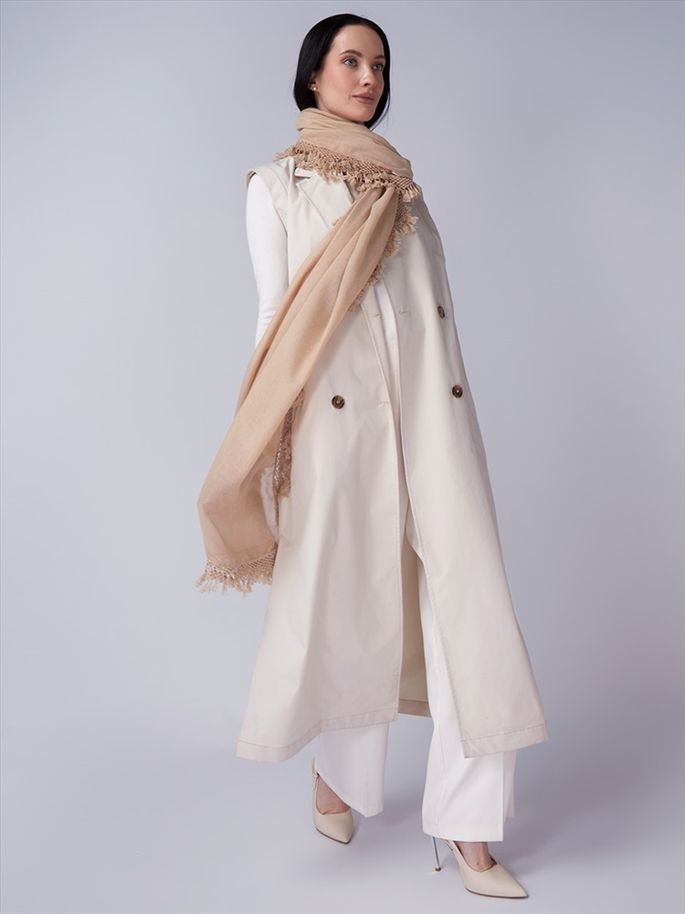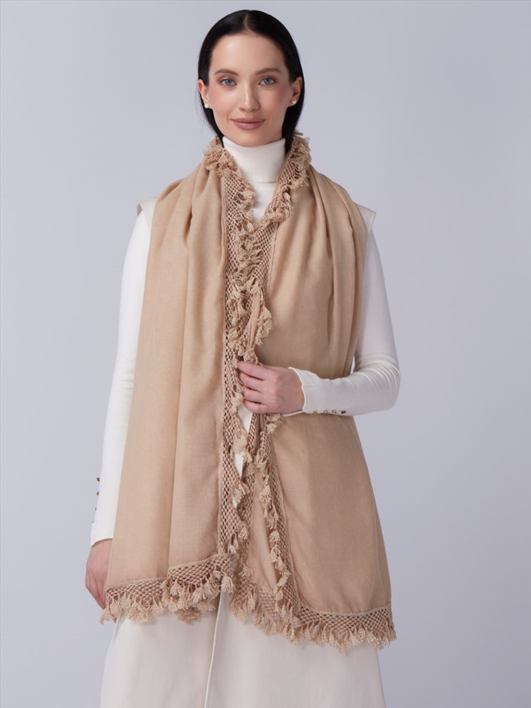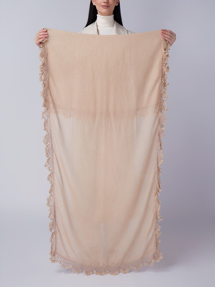 Цвет: Бежевый Состав: 55% полиэстер, 25% вискоза, 20% хлопок Состав: Вискоза, Полиэстер, Хлопок Размер: 70 x 180 см Принт: Однотонный Сезон: Осень, Весна Большой, мягкий, тонкий и очень нежный палантин с рисунком. Только ручная стирка. Комментарии к товару