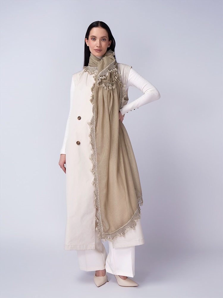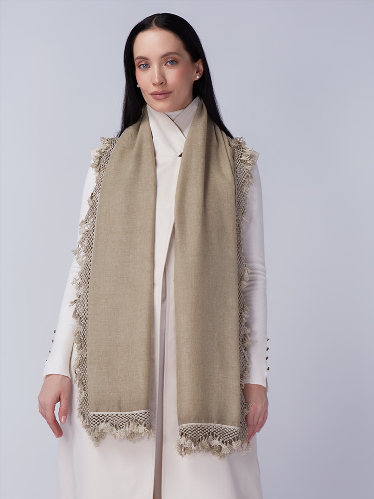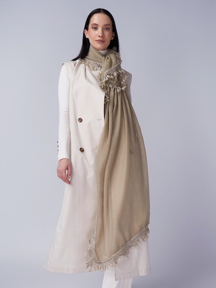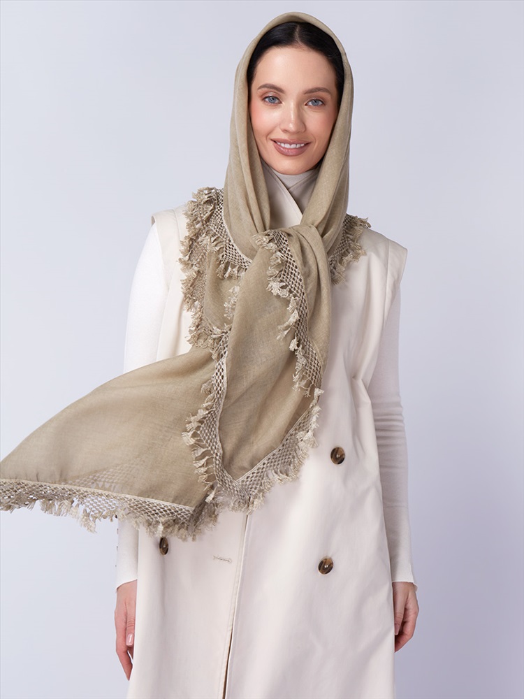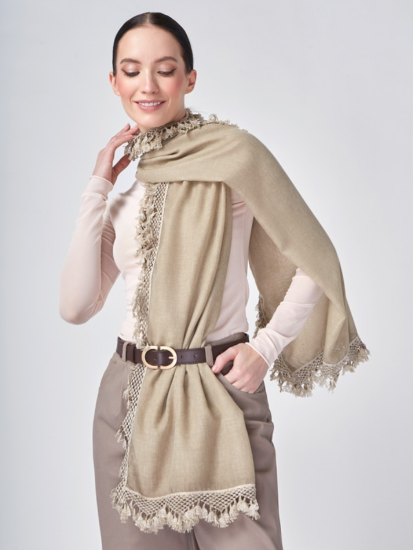 Цвет: Бежевый Состав: 55% полиэстер, 25% вискоза, 20% хлопок Состав: Вискоза, Полиэстер, Хлопок Размер: 70 x 180 см Принт: Однотонный Сезон: Осень, Весна Большой, мягкий, тонкий и очень нежный палантин с рисунком. Только ручная стирка. Комментарии к товару