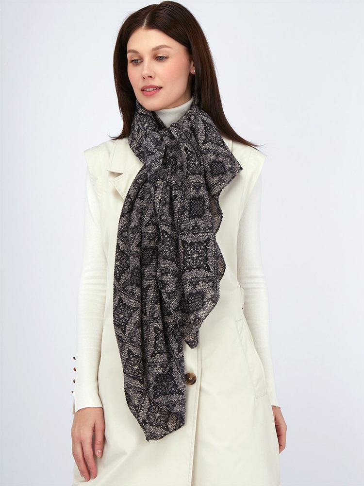 Большой, мягкий, тонкий и очень нежный палантин с рисунком. Ткань жатая. Только ручная стирка.