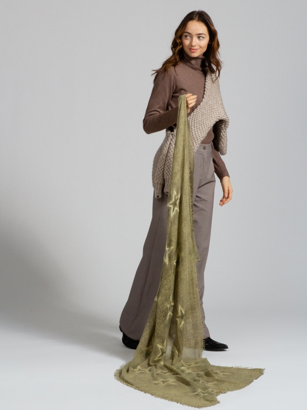 Размер: 90 x 180 см Состав: Акрил, Вискоза, Шерсть Состав: Вискоза 55% Шерсть 30% Акрил 15% Принт: Однотонный Цвет: Зеленый Комментарии к товару