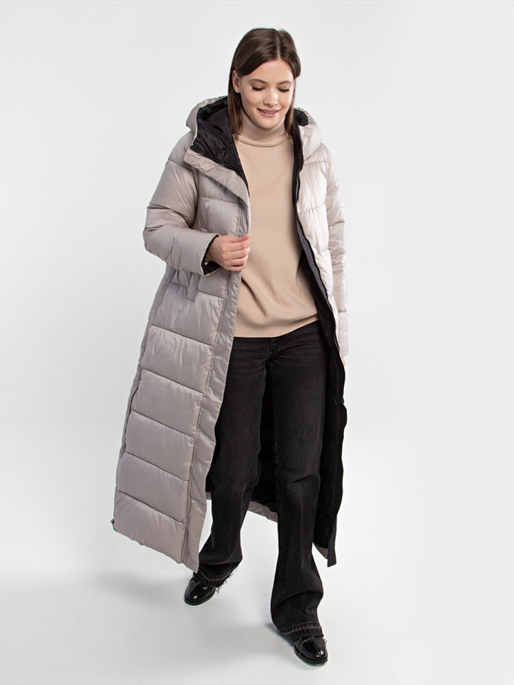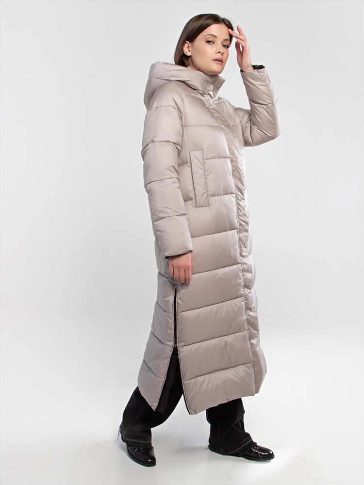 Длина: 125см Длинный пуховик из осенне-зимней коллекции станет идеальным вариантом верхней одежды для холодной ветреной погоды. Стеганое пальто изотовлено из непродуваемого нейлона с гладкой сатиновой поверхностью. Изделие утеплено легким био-пухом. За дополнительный комфорт отвечают воротник-стойка, объемный капюшон, внутренние манжеты рукавов. Для удобства черные боковые замки, которые идеально сочетаются с черной подкладкой. Карманы на магнитных кнопках.