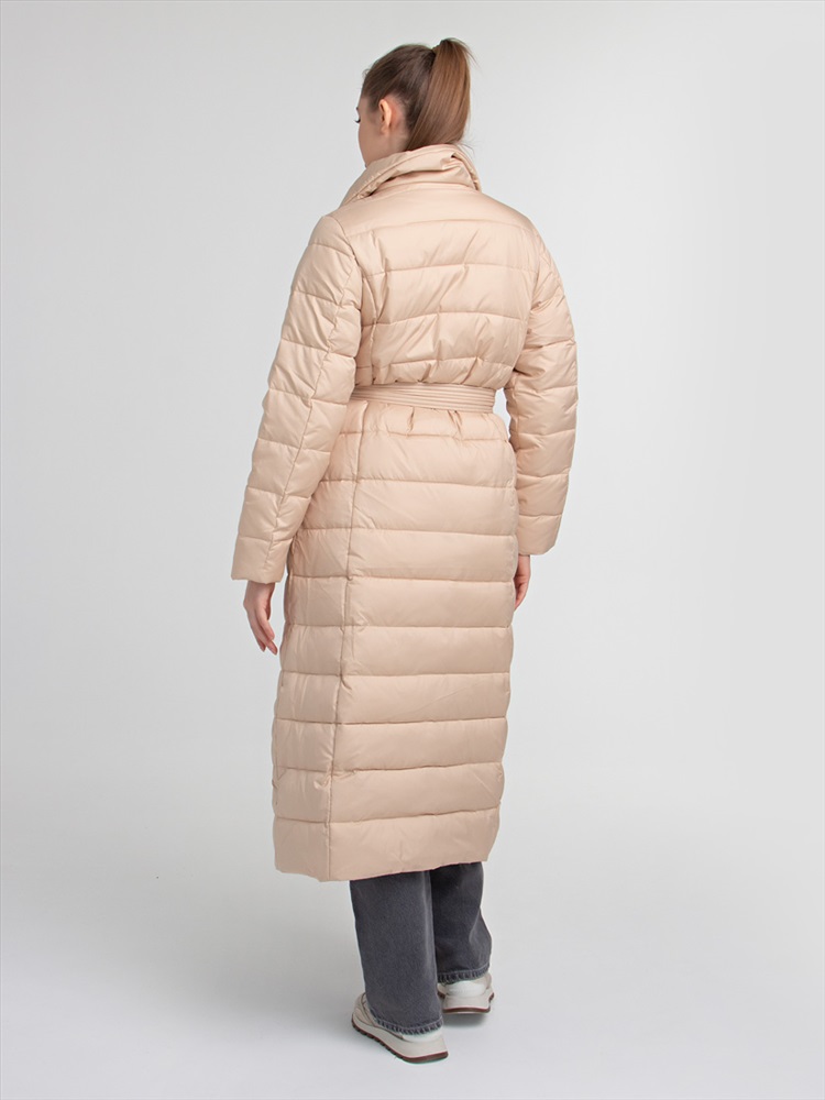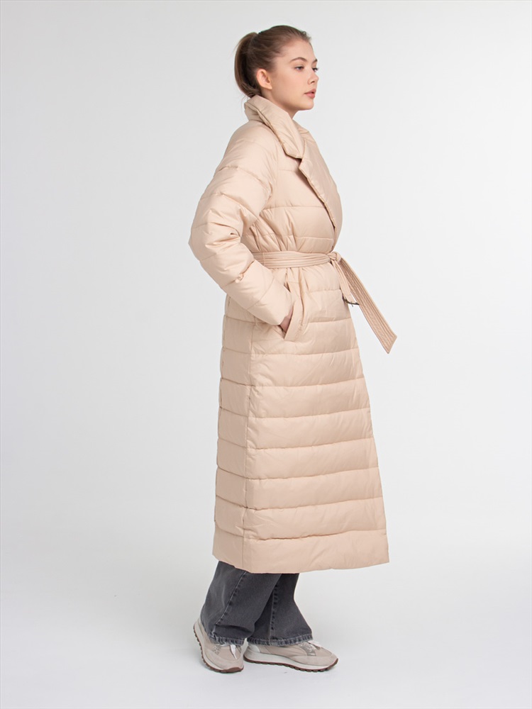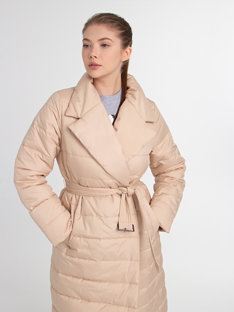 Длина: 121см Стеганое пальто одинаково гармонично поддержит  как образы стиля casual, так и более строгие ансамбли. Все дело в классических базовых цветах, прямом крое, воротнике. Элегантного акцента добавит пояс с пряжкой на шлевках, приталивающей силуэт.  Утеплитель био-пух для этого изделия получили из 15 переработанных пластиковых бутылок.