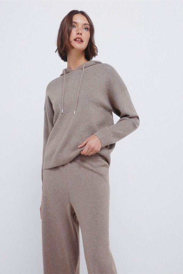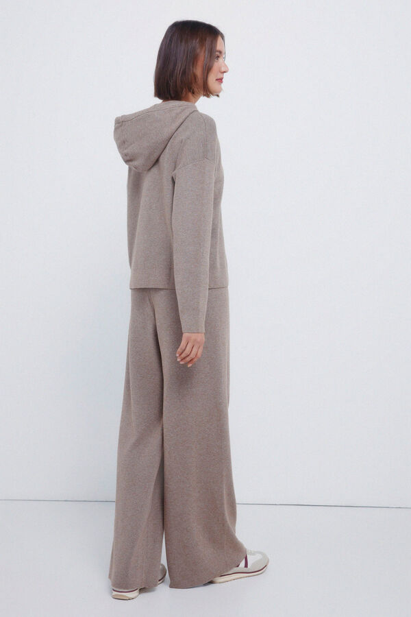 Pantalón de punto de talle alto con goma en la cintura, con pierna ancha con largo tobillero.