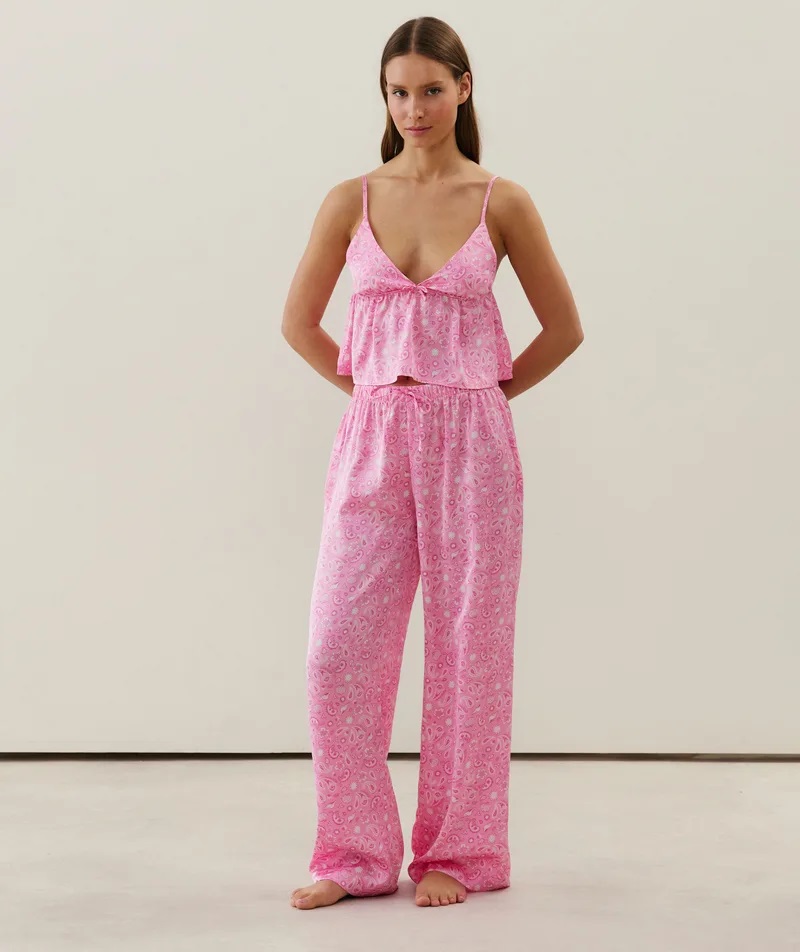 Descubre el pantalón de satén MINISATINIZ, ¡un modelo ancho con un hermoso volumen! Su cintura elástica es ajustable gracias a un cordón para atar. Nos encanta su estampado inspirado en el pañuelo bandana, un verdadero flechazo. Disponible en talla +. Para un look completo, combínalo con el top a juego. Además: forma parte de nuestra gama We care.