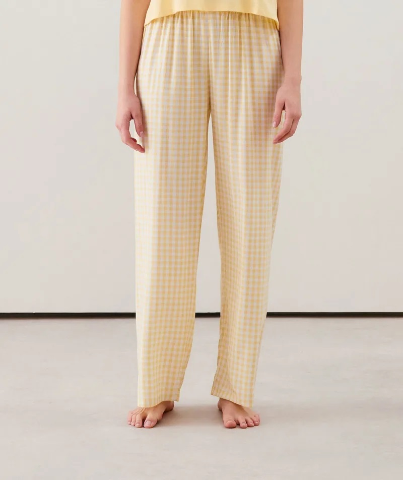 Enamórate de NIGHTWOODIZ, un pantalón de viscosa muy agradable al tacto e ideal para dormir. ¡Ligero, fluido y cómodo, no podrás vivir sin él! Este pantalón luce un elegante estampado de cuadros vichy.