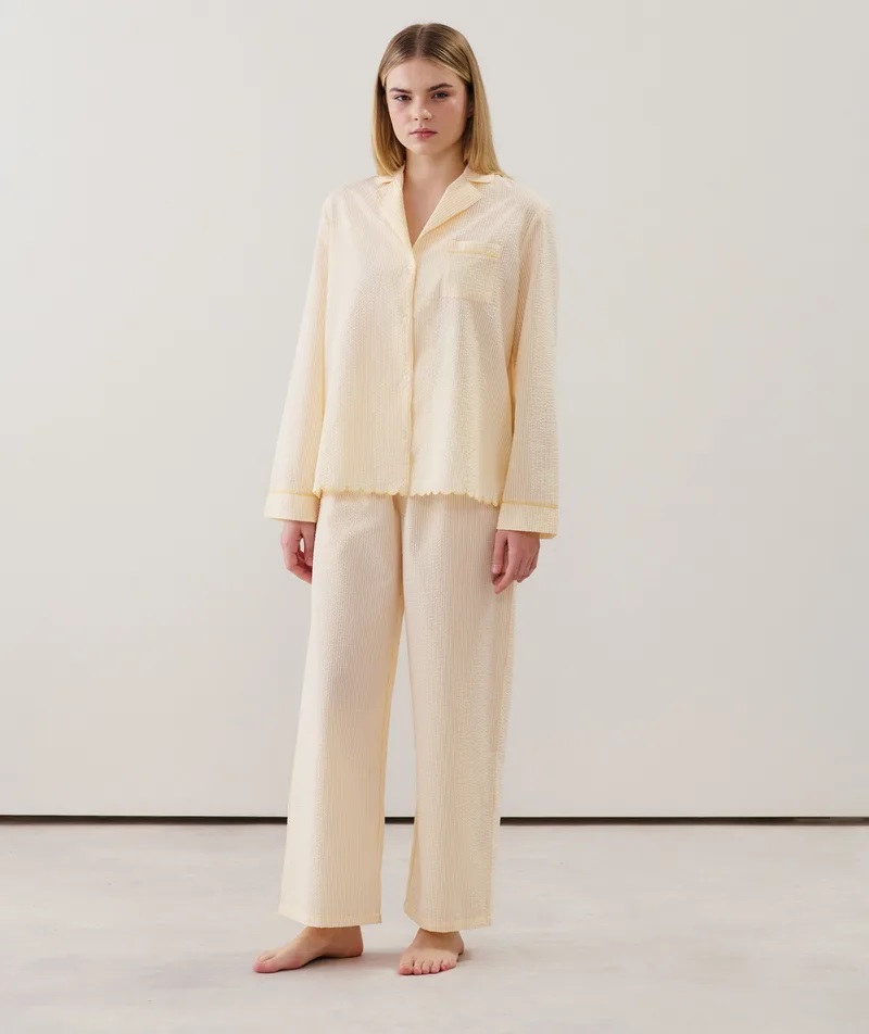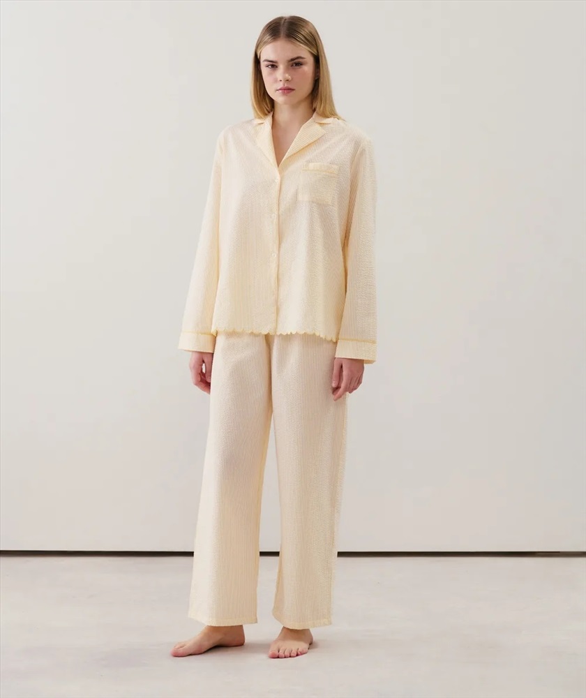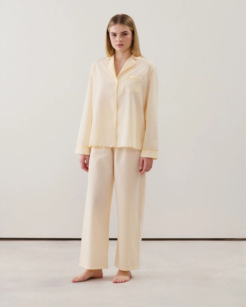\n- Pantalon GAELIZ \n- Color: amarillo pastel \n- Seersucker \n- We care