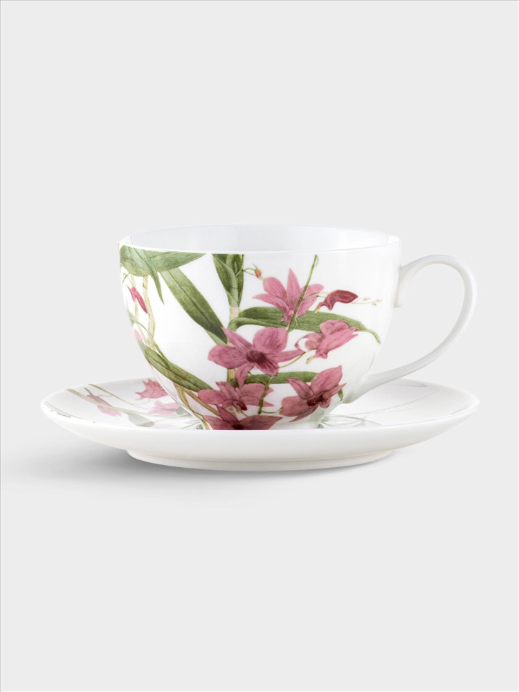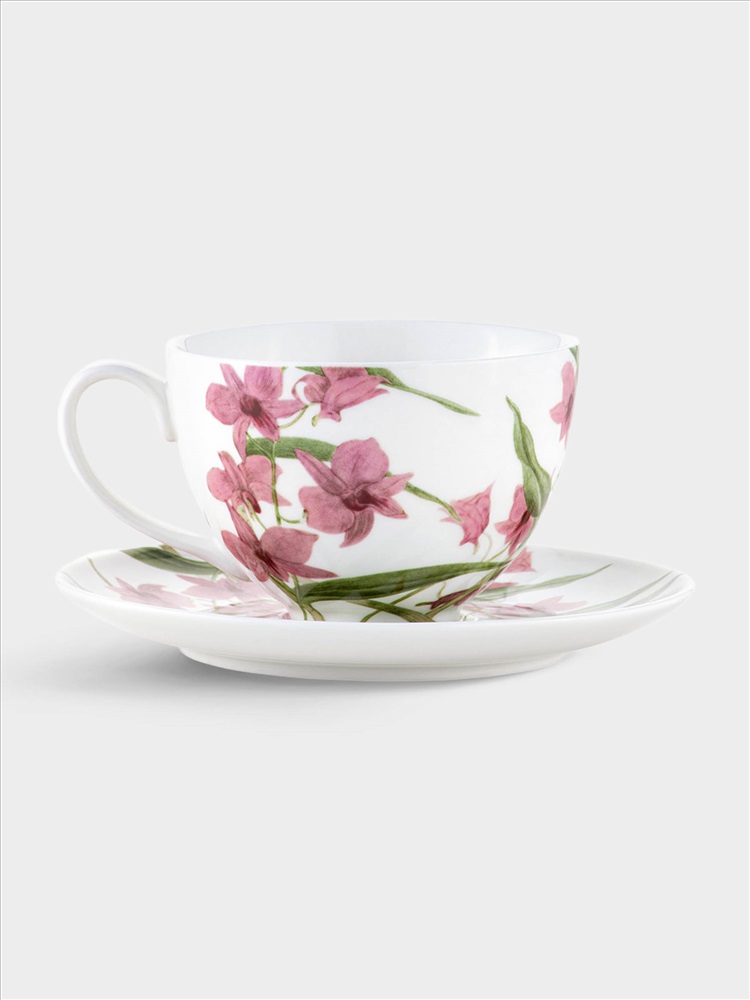 Чашка с блюдцем, 240 мл, Орхидея розовая