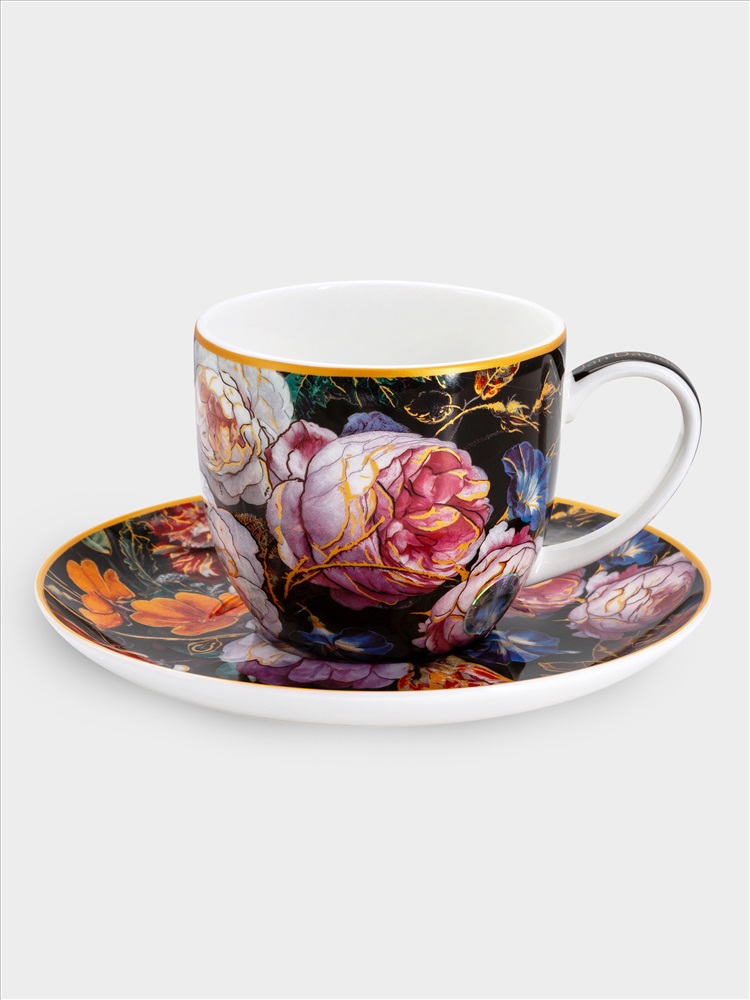 Бренд: CARMANI Пара чайная, 1 перс, 2 пр, 250 мл, фарфор F, черная, Розы, Baroque flowers. Материал: фарфор Fine Bone China. Мыть мягкими моющими средствами. Можно использовать в СВЧ и мыть в посудомоечной машине.