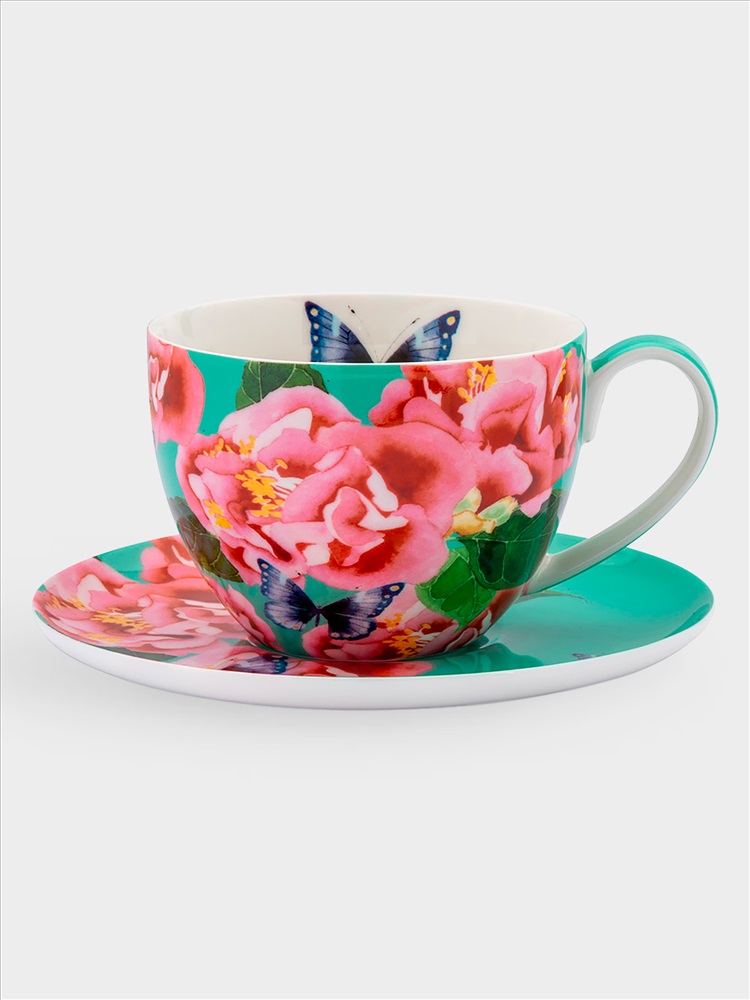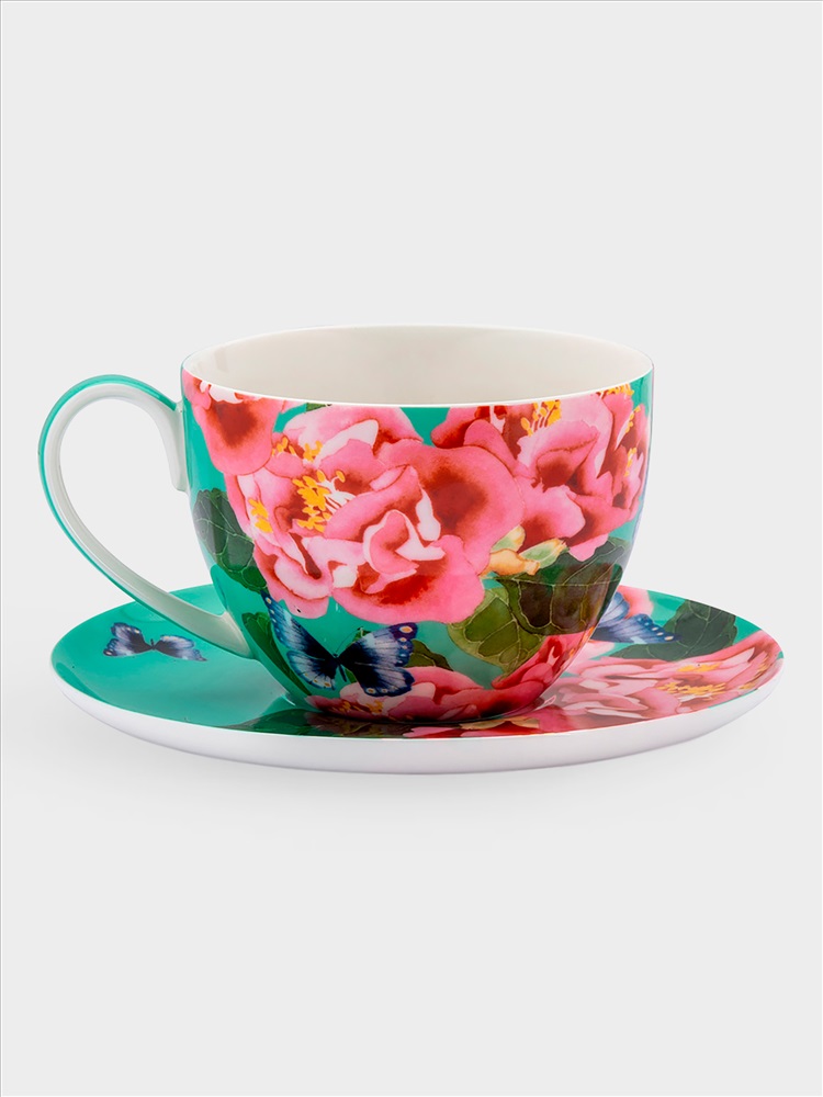 Пара чайная, 1 персона, 2 предмета. Комплектация и размеры: чашка, 400 мл - 1 шт, блюдце - 1 шт. Материал: фарфор Porcelain. Соответствует требованиям ГОСТ 28390-89 п.п. 1.2.8, 1.2.14;п.1.2 раздела 2, ГОСТ Р ИСО 6486-2-2007 п.4. Мыть теплой водой с применением жидких моющих средств. Можно использовать в микроволновой печи и в посудомоечной машине.