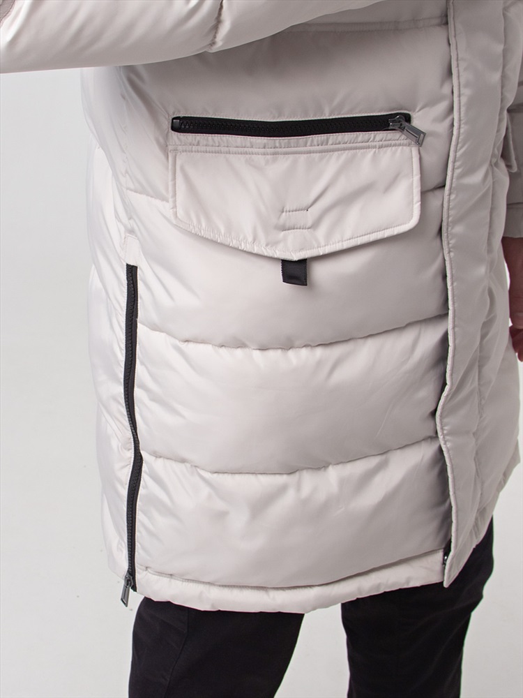 Длина: 98 см Для пошива удлиненной модели с объемным капюшоном мы выбрали прочный полиэстер с пропиткой. Такой материал отталкивает влагу и не пропускает ветер.. Глубокий цельнокроеный капюшон с искусственным мехом внутри защищает от ветра, а контрастные молнии сбоку превратятся в разрезы, которые позволят циркулировать воздуху, если температура поднимется. Пуховик декорирован фактурными лентами черного цвета, которые дополнительно усиливают кнопки. За дополнительный комфорт отвечают широкая ветрозащитная планка с застежкой на кнопки, теплые карманы, внутренние трикотажные ветрозащитные манжеты. Пуховик украшен черной подкладкой с оригинальным авторским принтом – SIBERIAN GOOSE .