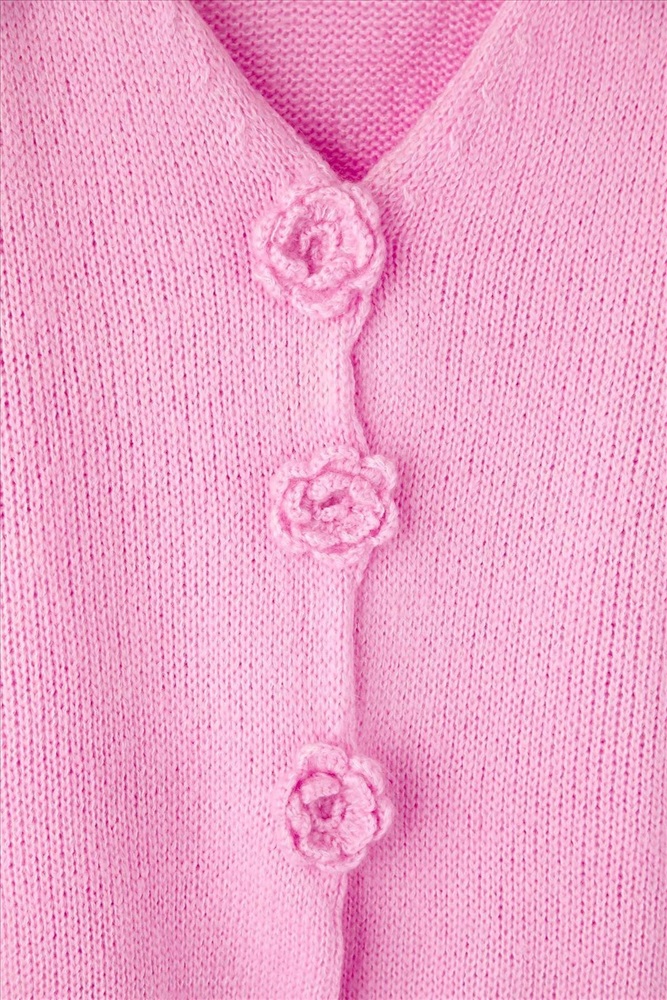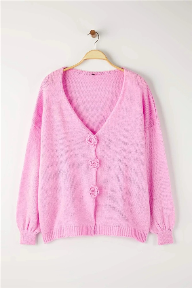 Pembe Çiçek Detaylı Triko Hırka TBBAW26AV00020