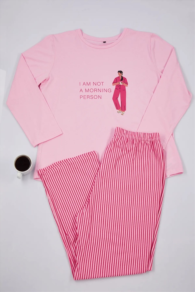 Pembe Çizgili Bisiklet Yaka Örme Pijama Takımı TBBAW25AI00041