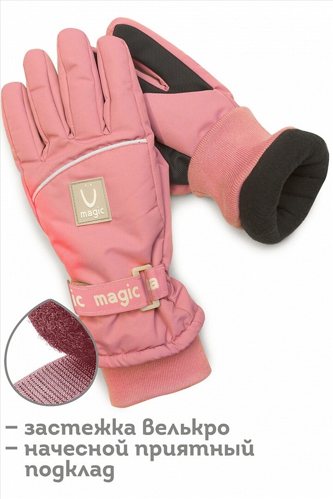 Детские зимние перчатки непромокаемые для девочки. Теплые перчатки для детей имеют невероятно согревающий начесной материал подклада, мягкий и приятный для кожи. Пальчики ребенка всегда будут в тепле, не страшны даже зимние игры в снежки. Покрытие мембрана защищает от ветра, но пропускает воздух не создавая эффект бани. Усиленная ткань на ладони, анатомическая форма, антискользящая вставка и снего-водонепроницаемое качество делают их идеальными спортивными для занятий спортом, для активной зимы, для зимних видов спорта. Подходят как лыжные перчатки. Резинка на запястье плотно облегает руку малыша не пропуская холод и надежно фиксируя перчатки, не передавливая кисть. Клапан липучка создает красивый стильный образ и регулирует плотность изделия по руке. Благодаря карабину рукавицы для девочек можно соединять друг с другом. Утепленные перчатки краги для подростка это неотъемлемая часть зимнего гардероба. Множество деталей понравится и привлекут внимание, обезопасив детей в темноте.