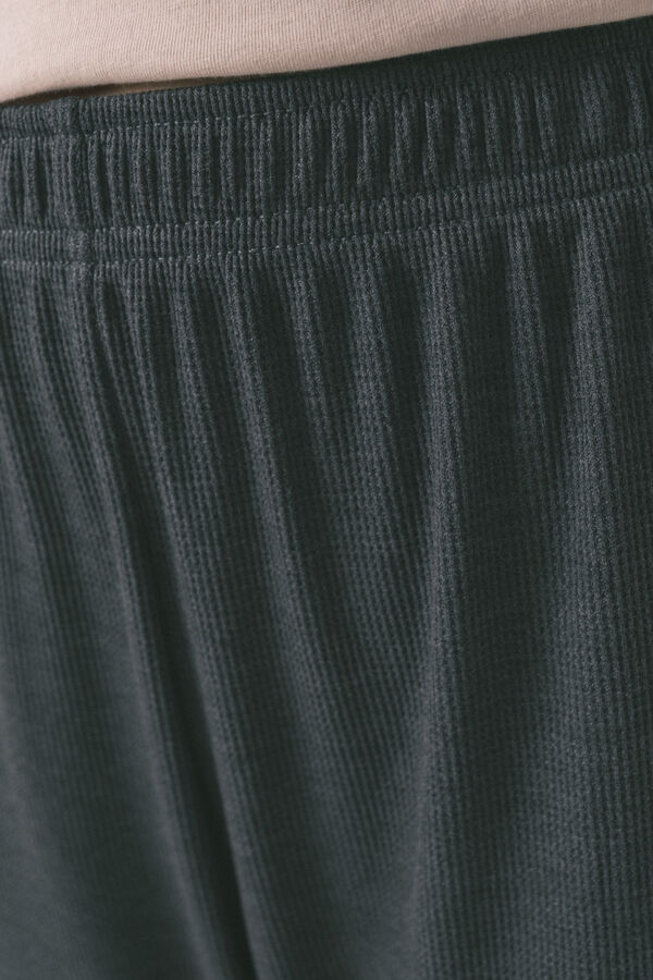 - Top holgado al estilo sudadera con mangas caídas, cuello pulido con vivo a tono, abertura central con tapeta de botones a tono y estampados es pecho y espalda. - Pantalón ancho ligeramente acampanado con textura de waffle, cinturilla elástica y etiqueta central. - Combina con otras prendas y accesorios de la colección. - Al elegir nuestros productos de algodón, estás apoyando nuestra inversión en la iniciativa “Better Cotton”.
