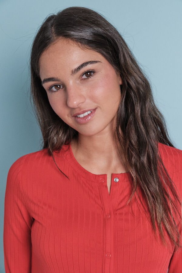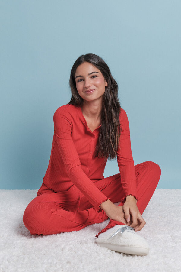 Pijama largo confeccionado en tejido algodón de canalé suave.