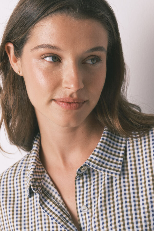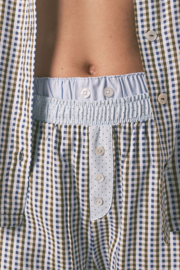 - Parte de arriba con cuello camisero, botones a tono, bolsillo en el pecho y canesú en la espalda. - Pantalón con estampado a cuadros y cinturilla con estampado de topos a contraste con tapeta y botones en la bragueta. - Al elegir nuestros productos de algodón, estás apoyando nuestra inversión en la iniciativa “Better Cotton”.