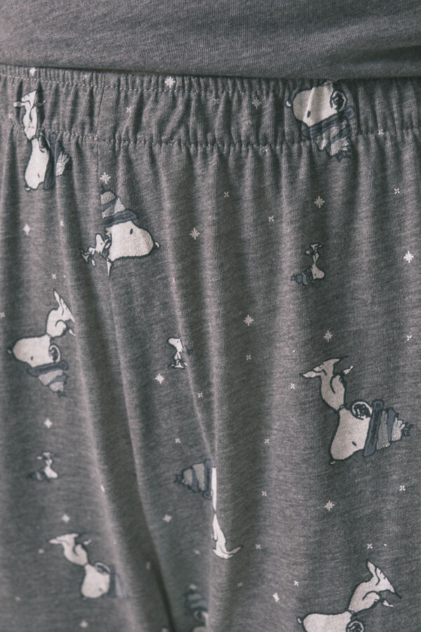 Pijama 100% algodón de manga corta y pantalón largo, con divertido dibujo de Snoopy. Ideal para estar en casa o dormir súper calentita.
