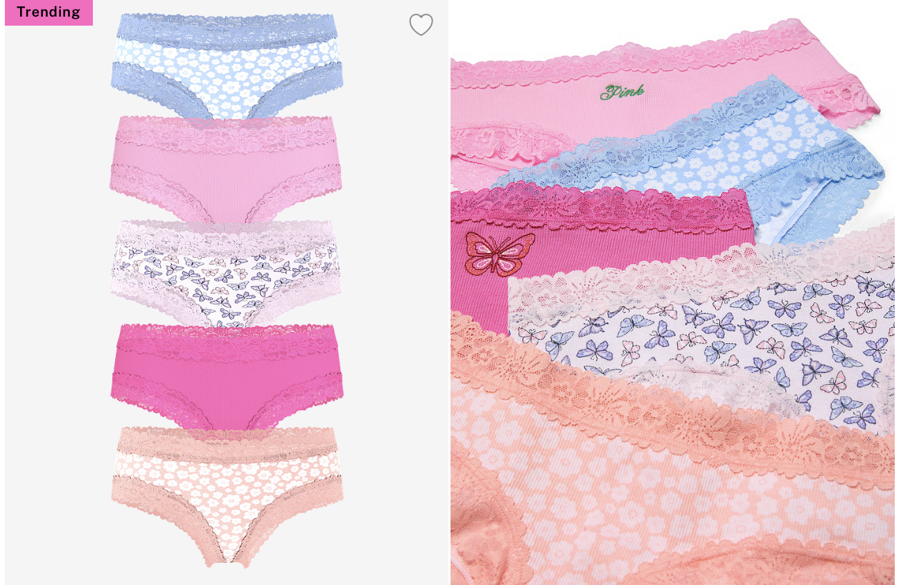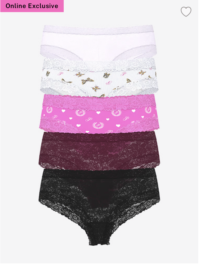 PINK 5-PACK WINK LACE-TRIM CHEEKY PANTIES