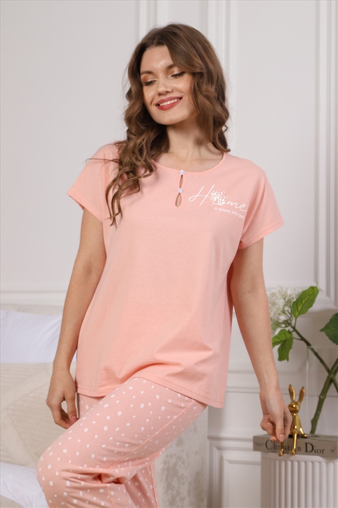 Пижама молодежная из трикотажного полотна «кулирка» в комбинации двух видов в единой цветовой гамме: гладкокрашенного и с набивным