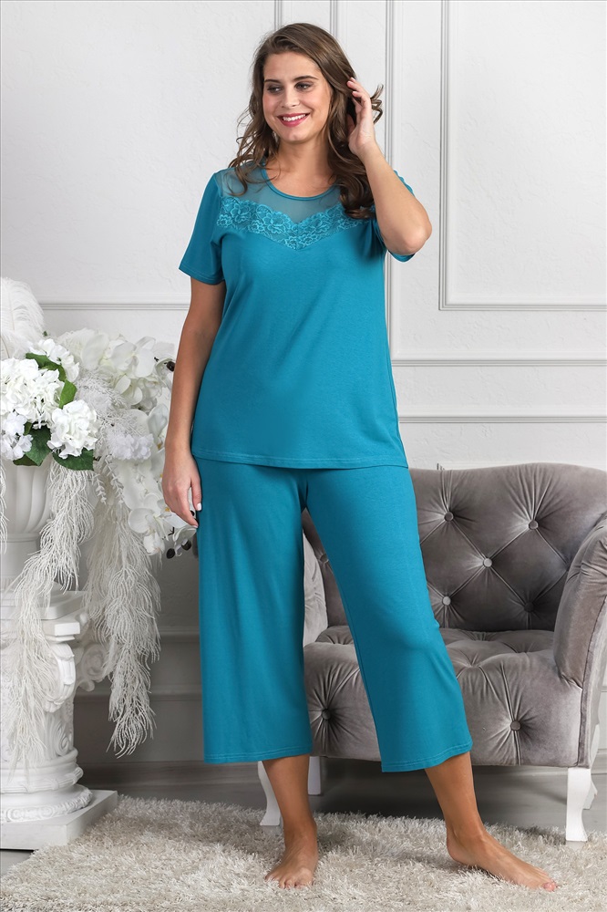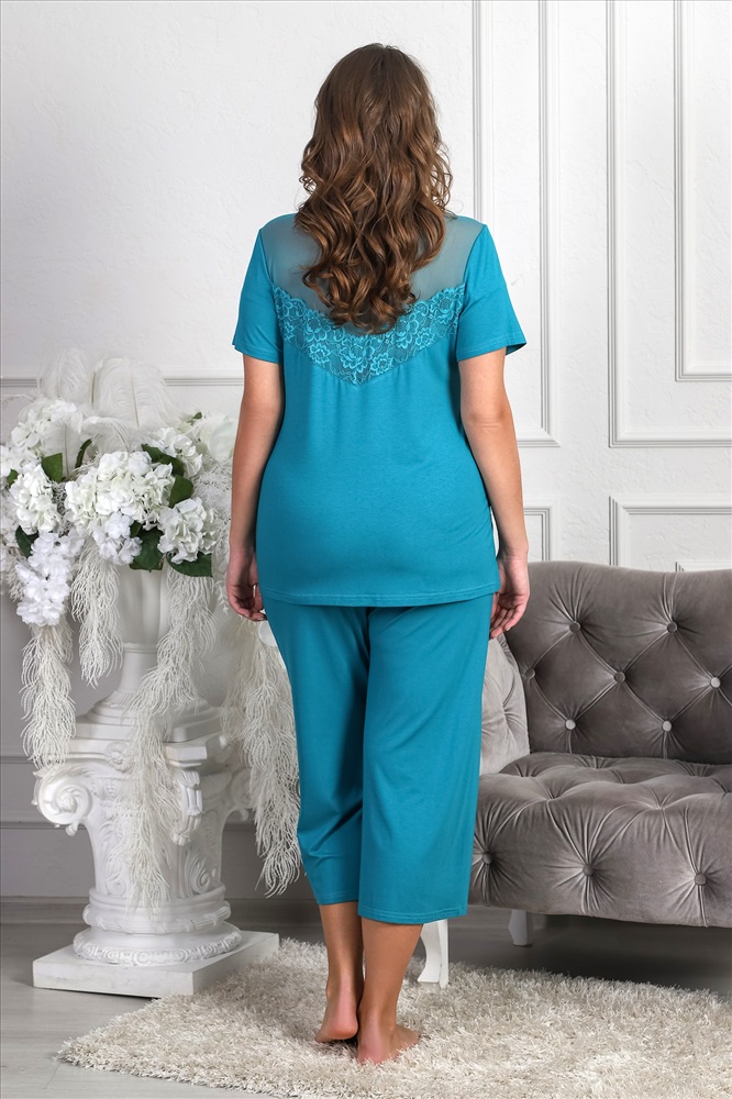 Пижама из гладкокрашеного трикотажного вискозного полотна, состоящая из футболки и брюк- кюлотов .