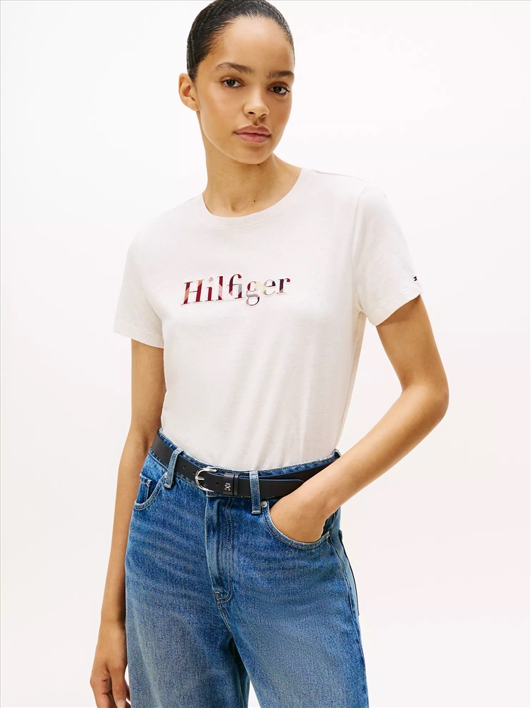 Tommy Hilfiger women's T-shirt. Made from pure cotton and designed with our plaid Hilfiger logo, our tee is a soft, comfortable layer.