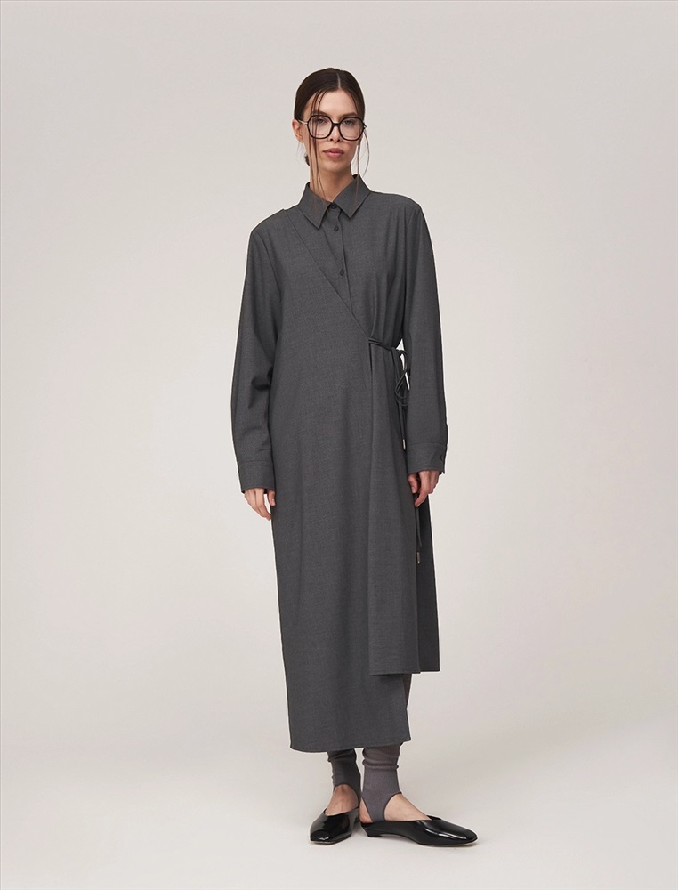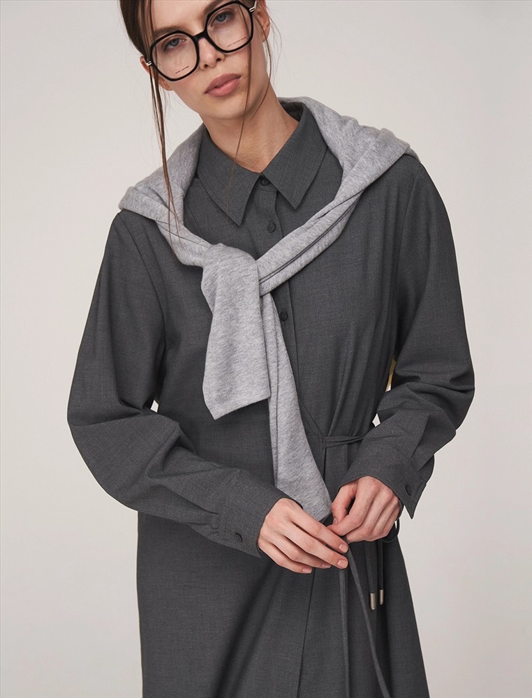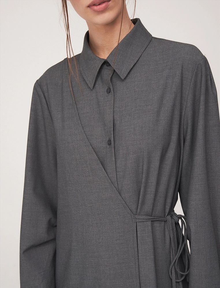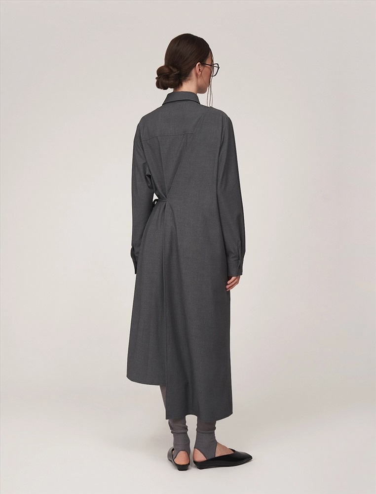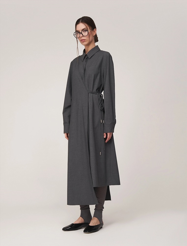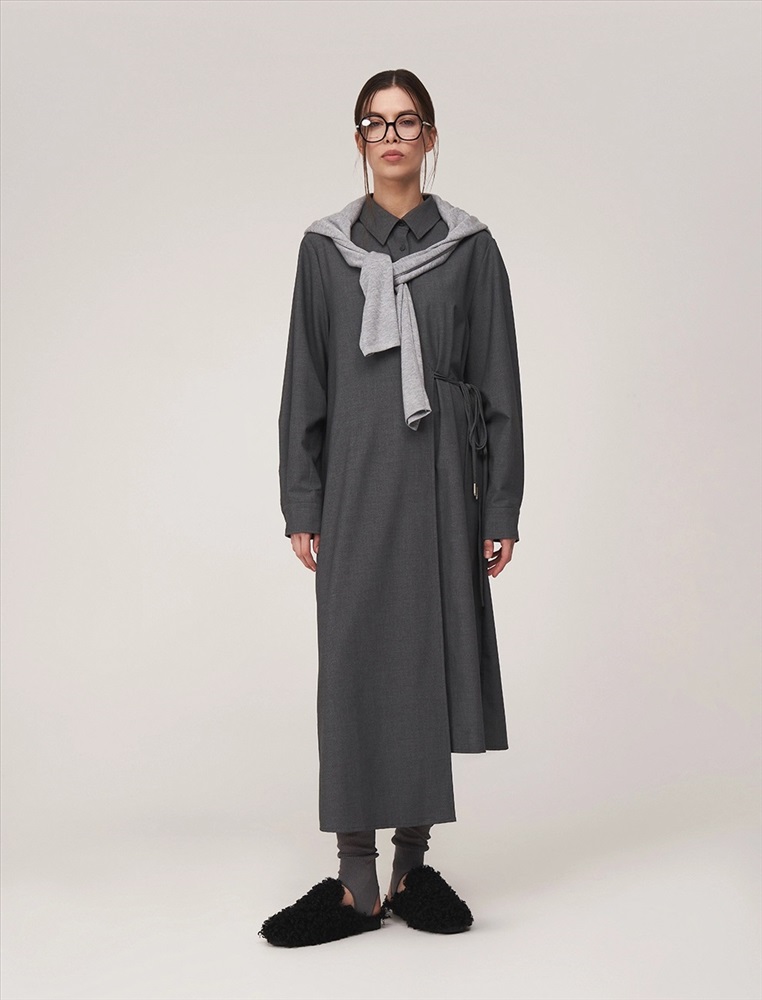Видео: https-//hassfashion.ru/upload/iblock/672/nkq0ard8jzyfxzhb3cnxgkti9abk4wfs.mp4 осень-зима 40% Хлопок, 25% Вискоза, 18% Лиоцелл, 10% Терилен, 4% Спандекс, 3% Кашемир Платье-рубашка асимметричное, длины миди и макси. По передней части изделия отложной воротник и планка с застежкой на пуговицы. С правой стороны — полотно, закрепленное в плечевом шве и оснащенное шнурками для акцентирования талии.