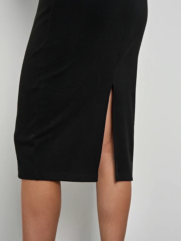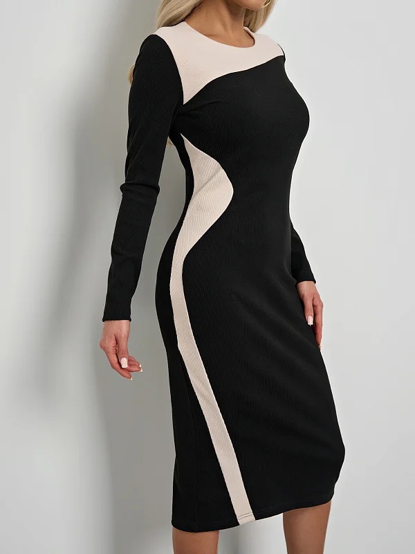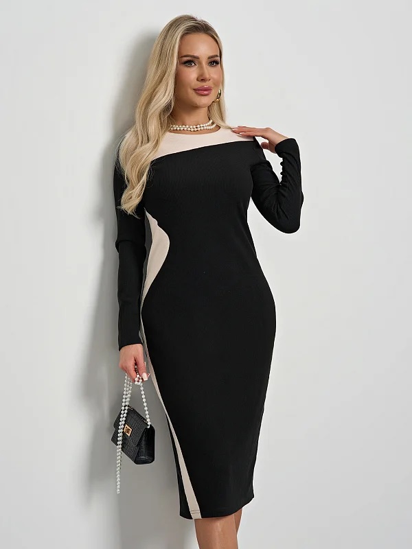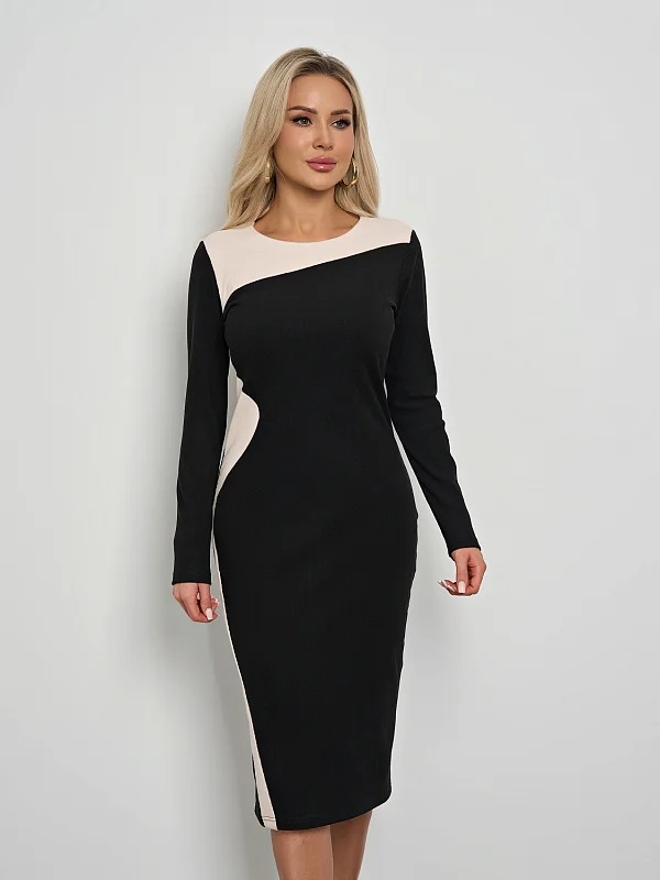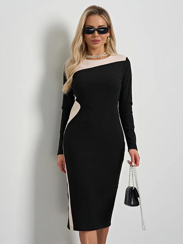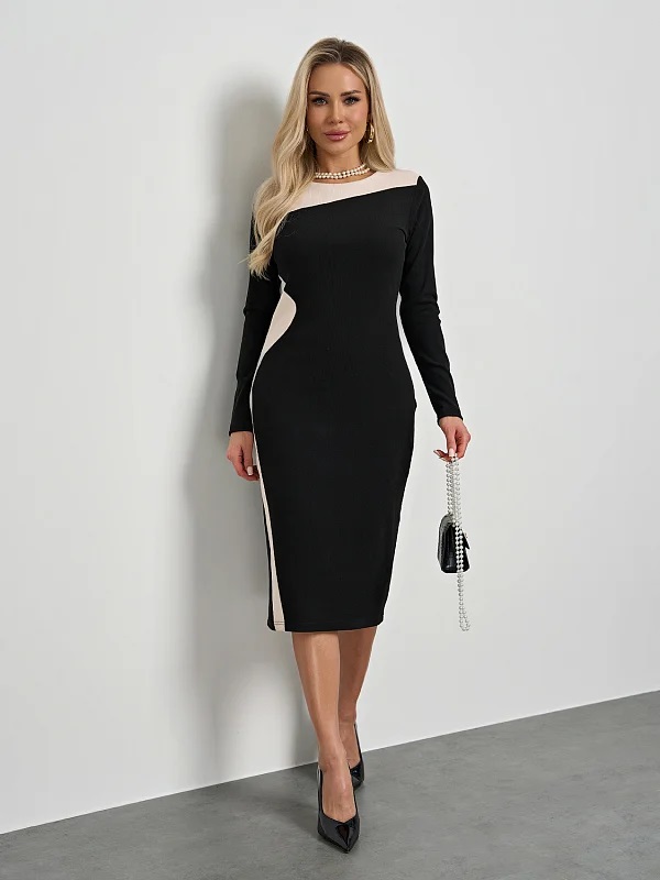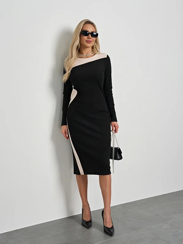 Стильное платье прилегающего силуэта длины миди из трикотажа лапша.