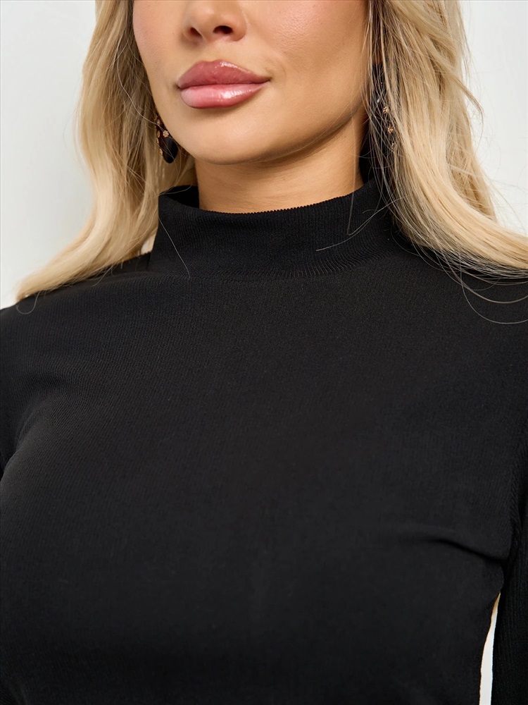 Платье прилегающего силуэта с воротником стойкой.