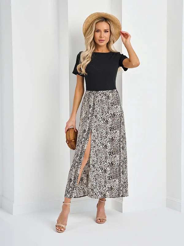 Верх выполнен из трикотажа-лапша, юбка из тонкой плательной ткани.