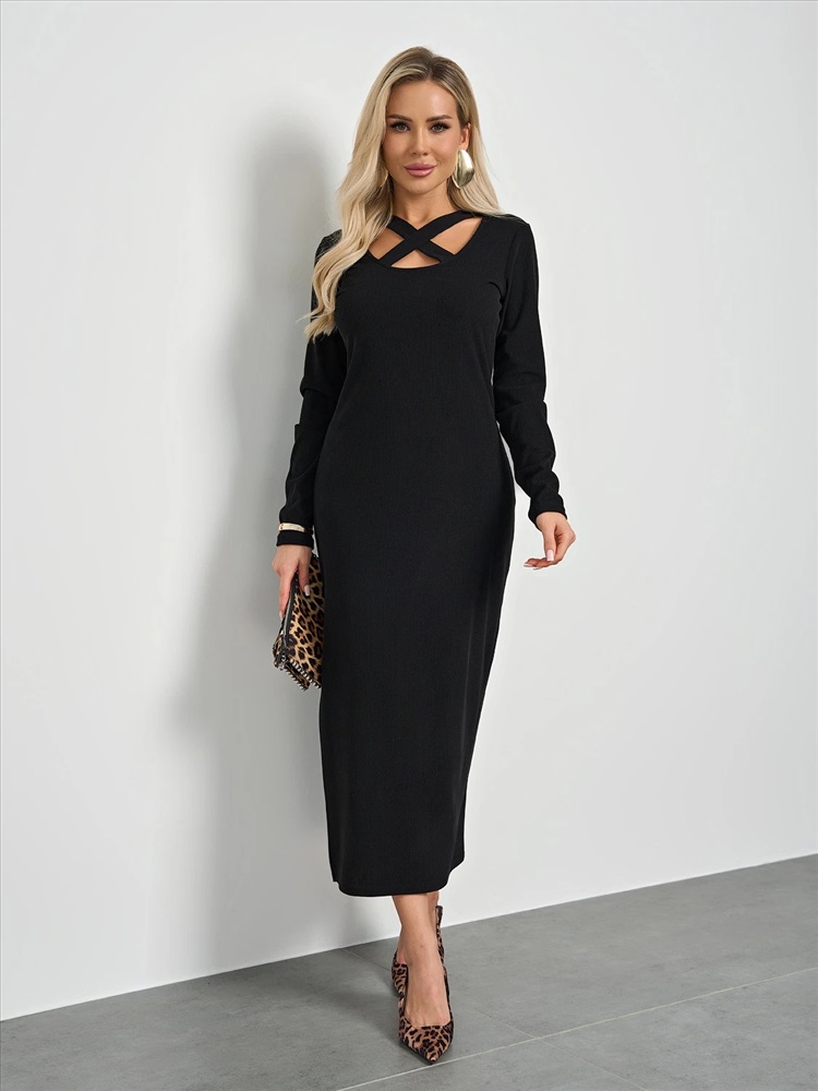 Трикотажное платье полуприлегающего силуэта.