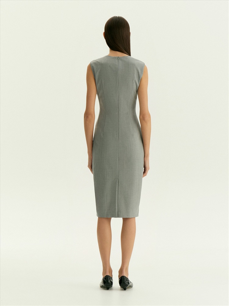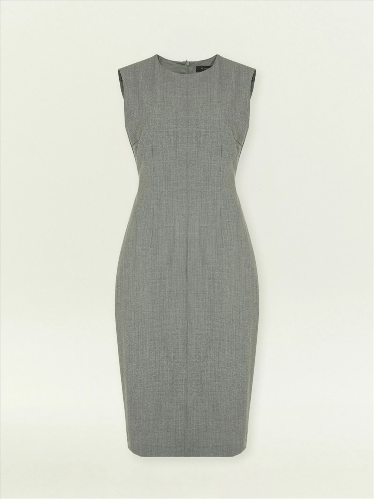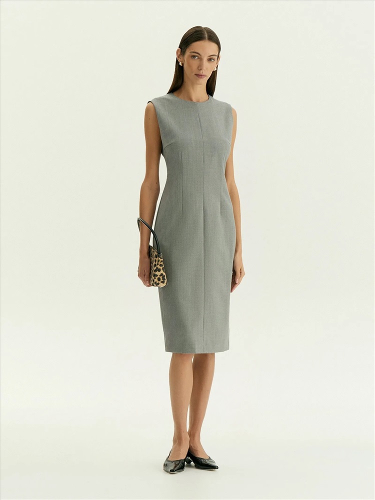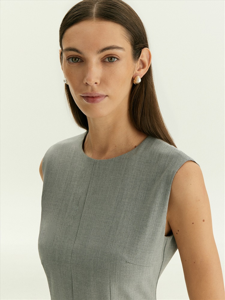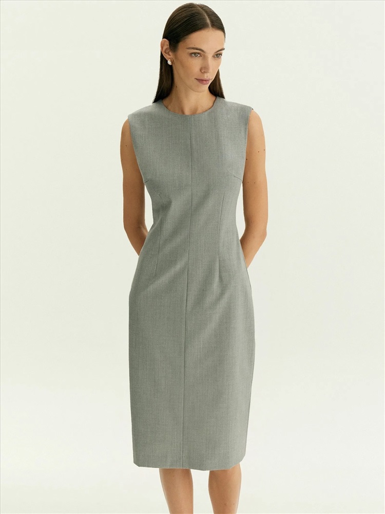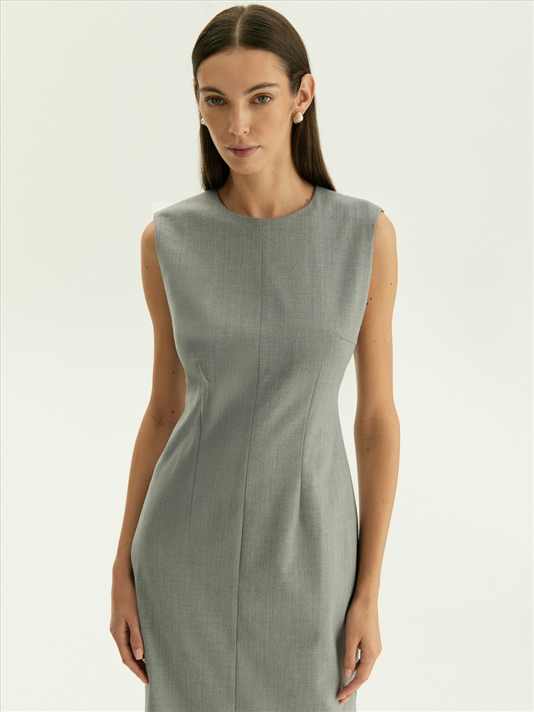 Универсальное платье на каждый день и к любому случаю. Элегантный оттенок серого, безупречная посадка спереди и сзади, лаконичный и элегантный фасон, всегда уместная длина ниже колена. Платье-футляр без рукавов идеально под жакет и соло. Тонкая, но не холодная костюмная ткань приятна на ощупь. Это комфортный вариант на демисезон — в составе почти четверть натуральной шерсти. Имеется подкладка с вискозой. Изделие застёгивается на молнию сзади. Платье может стать основой элегантной капсулы с жакетом, жилетом, юбкой и брюками erin