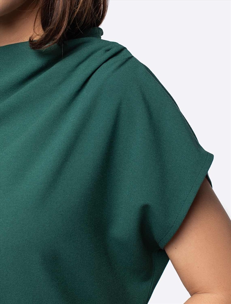 Параметры модели на первом фото: Рост 170, бюст 89, талия 63, бедра 92 Лаконичное платье сшито из эластичного крепа. Достаточно сдержанный вырез горловины хорошо комбинирует с цельнокроеным рукавом и мягкой драпировкой на плече. На спинке застежка из двух пуговиц. Ткань почти не мнется и хорошо держит форму. В подарок идет ремешок из эко-кожи. Комментарии к товару