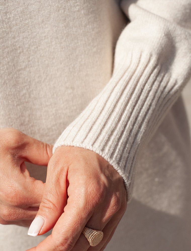 Размер товара на первом фото: 42 Платье с воротом стойка выполнено из мягкой меланжевой пряжи с кашемиром. Модель свободного силуэта со спущенным плечом хорошо впишется в расслабленные осенне-зимние аутфиты с высокими сапогами. Изделие очень приятное к телу, совершенно не колется и отлично сохраняет тепло при этом не перегревая.