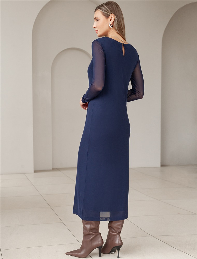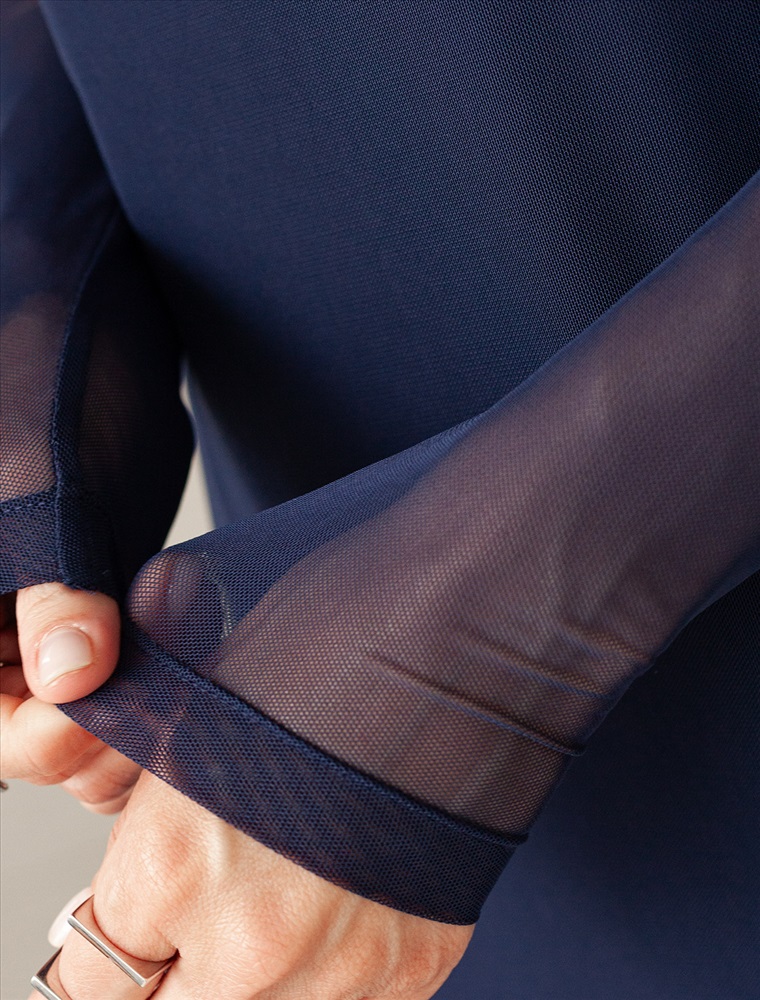 Состав: 95%ПЭ 5%ПУ; ПОДКЛАДКА- 95%Вис 5%ПУ Модель выполнена из воздушной сетчатой ткани с вискозной подкладкой, которая подчеркивает фигуру. Прямой крой создает стройный силуэт. Богатый темно-синий цвет создает эффект глубины и роскоши. Прозрачные рукава добавляяют образу пикантности. Идеально подходит как для вечерних выходов, так и для повседневного образа.