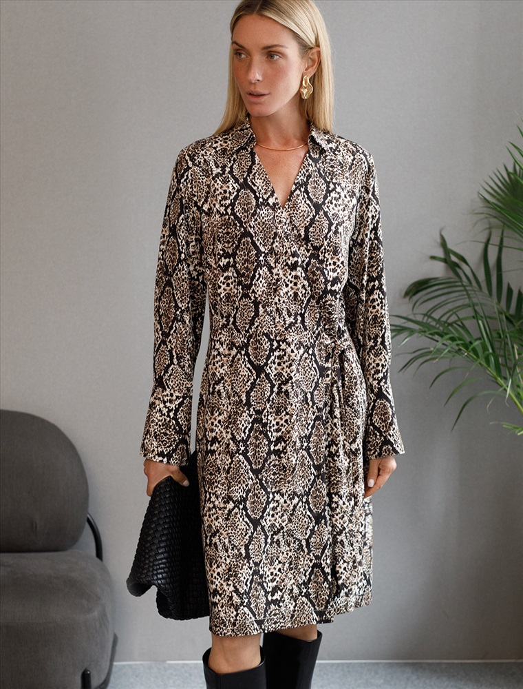 Параметры модели на первом фото: Рост 172, бюст 88, талия 64, бедра 88 Размер товара на первом фото: 42 Женственное платье А-силуэта со змеиным принтом из премиальной вискозы — идеальное сочетание комфорта и стиля. Длина чуть ниже колена подчеркивает женственность, а отложной воротник добавляет элегантности. Репсовый пояс акцентирует талию, создавая гармоничный силуэт. Змеиный принт делает образ современным и дерзким. Мягкая вискозная ткань приятна к телу, не стесняет движений и отлично драпируется. Универсальная модель для офиса, свиданий и вечерних выходов. Комментарии к товару