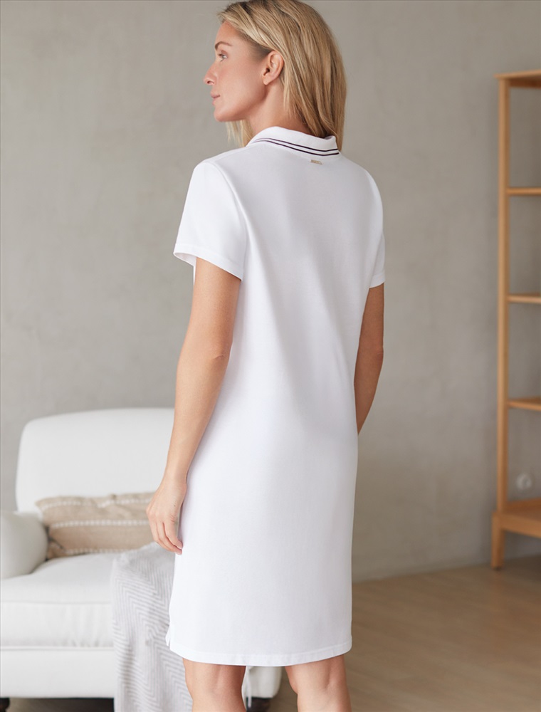 Стильный и комфортный вариант платья из фактурного трикотажа на лето! Легкий хлопковый материал приятен к телу и отлично пропускает воздух. Классический покрой с коротким рукавом и аккуратным воротником подходит для прогулок и отдыха. Минималистичный дизайн идеально подчеркивает силуэт, обеспечивая при этом непревзойдённый комфорт. Универсальная модель создана для тех, кто ценит лаконичность и удобство в повседневной жизни.