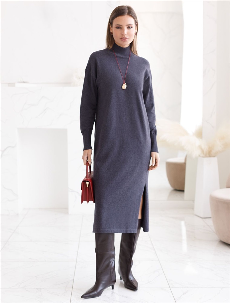 Размер товара на первом фото: 42 Платье тонкой вязки выполнено из хлопка. Лаконичная модель с высоким воротом дополнена манжетами и разрезами по бокам. Изделие свободно сидит по фигуре и не сковывает движений. Мягкая пряжа очень приятная к телу не колется и сохраняет тепло при этом не перегревая. Изделие дополнено металлическим логотипом бренда.